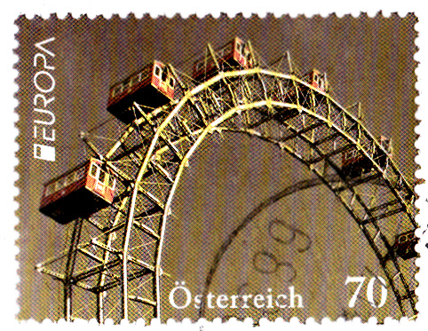 In Österreich erschien eine Europamarke 2012 zum Gemeinschaftsthema "Europa - Besuche" zu 70 Cent in einem Block. Hier zeige ich die Einzelmarke mit dem Motiv "Riesenrad im Wiener Prater" aus diesem Block: