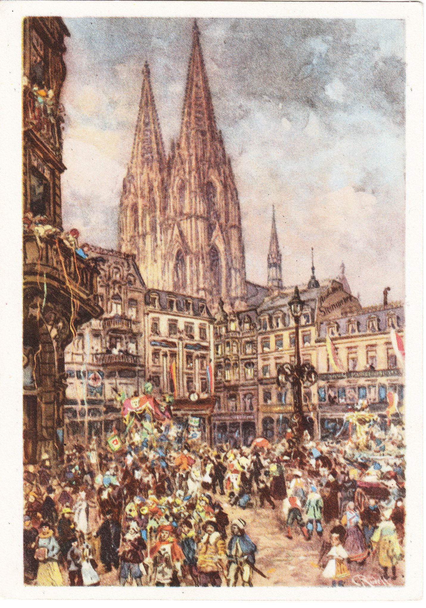 Maschinenstempel KÖLN 1 "ab" vom 10.02.1939 mit Werbeeinsatz "Köln Karneval 1939" und dem Kölner Prinz Karneval als Motiv auf Brief im Ortsverkehr der Portostufe zu 8 Pfennig: