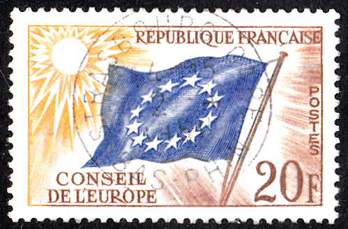 Hier ein gestempeltes Exemplar der Dienstmarke Europarat MiNr. 3 der Wertstufe zu 20 Francs: