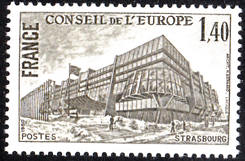 Hier ein postfrisches Exemplar der Dienstmarke Europarat MiNr. 25 der Wertstufe zu 1,40 Francs mit dem Motiv "Palais de I´Europe in Straßburg" jetzt mit Länderbezeichnung "France":