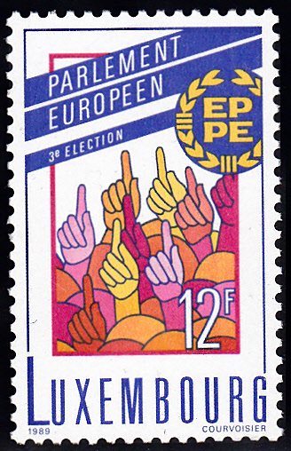Zu den dritten Direktwahlen zum Europäischen Parlament erschien in Luxemburg eine Marke (MiNr 1223) mit dem Europa-Emblem und abstimmenden Händen.