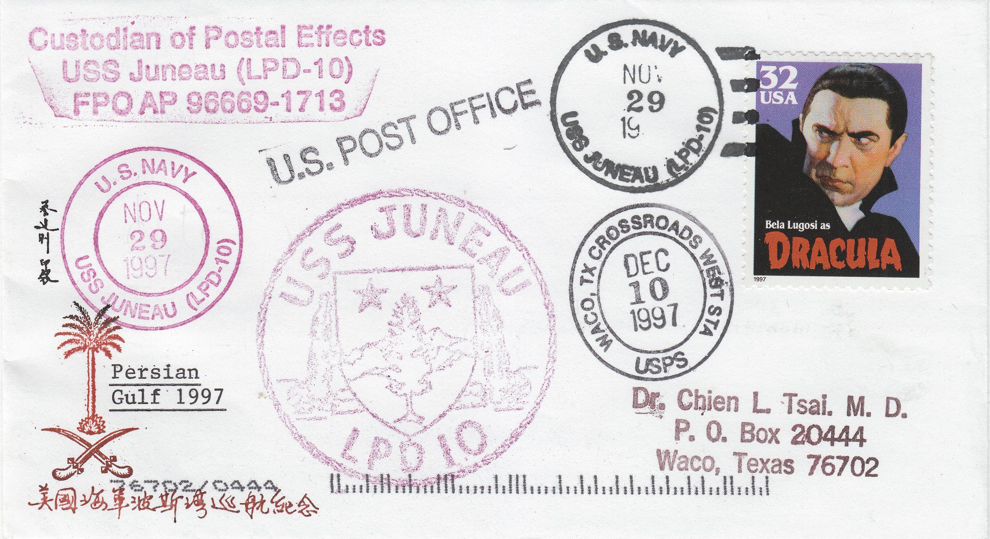 Dieser Beleg vom 29.11.1997 stammt von einem Einsatz des Schiffes im Persischen Golf: