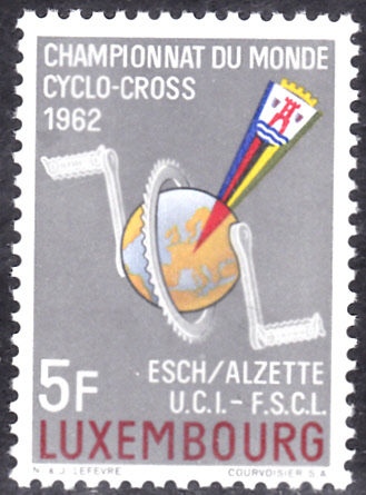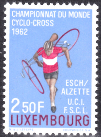 Die 13. UCI-Cyclocross-Weltmeisterschaft wurde 1962 in Esch, Luxemburg, ausgetragen. Dazu ist in Luxemburg diese Marke (MiNr 655) erschienen. Sie zeigt einen Radrennfahrer mit geschultertem Rad.