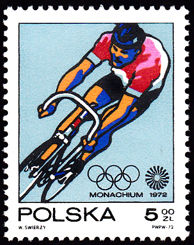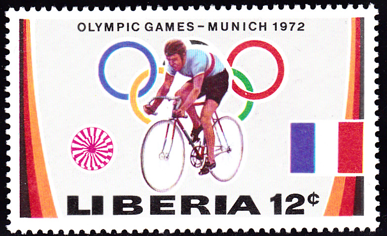 Diese Marke aus Liberia (MiNr 829 A) zu den Olympischen Spielen 1972 zeigt einen Radfahrer.