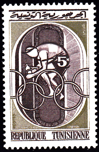 Auf einer tunesischen Marke (MiNr 562) zu den Olympischen Spielen 1960 wird ein Radrennfahrer gezeigt.