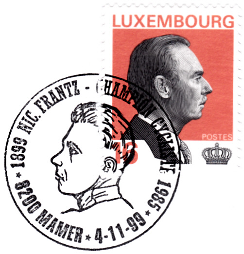 Zum 100. Geburtstag von Nicolas Frantz wurde in seinem Geburtsort ein Sonderstempel mit seinem Porträt eingesetzt.