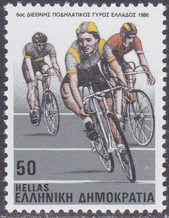 Zur Griechenland-Rundfahrt gab es in Griechenland diese Marke (MiNr 1625) mit Rennfahrer beim Straßenrennen.