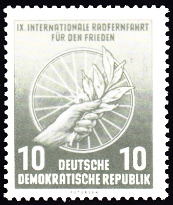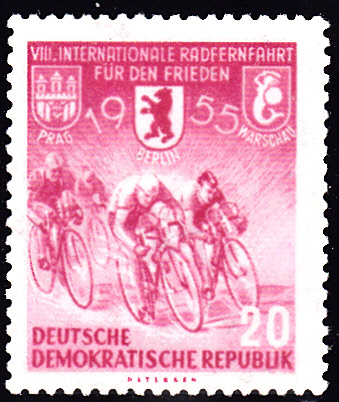 In der DDR erschien zur Internationalen Radfernfahrt für den Frieden 1957 Prag-Berlin-Warschau eine Marke zu 5Pf (MiNr 568) mit einer Streckenskizze, der Karlsbrücke in Prag, dem Roten Rathaus in Berlin und dem Kulturpalast in Warschau im Markenbild.