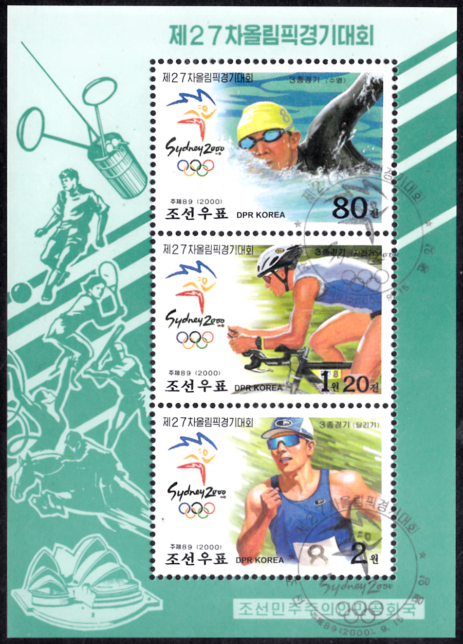 Ebenfalls aus Korea-Nord kommt diese Marke (MiNr 4380) zu den Olympische Sommerspiele in Sydney mit einem Straßen-Radrennfahrer.
