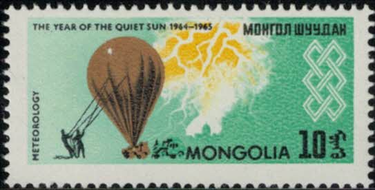 Mongolei Int. Jahre der ruhigen Sonne Meteorologie, Ballon vor Gewitterszene 1965 Minr 37801042016.jpg