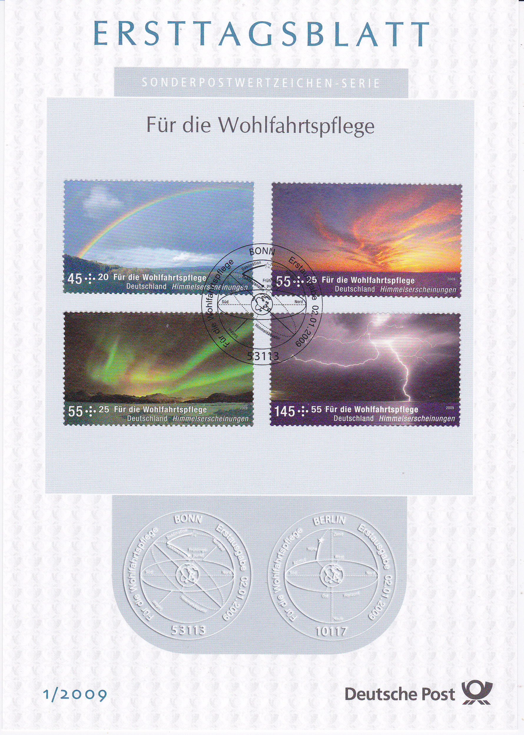Auf dieser Marke (MiNr 2710) aus der Wohlfahrtsmarkenserie 2009 mit "Himmelserscheinungen" wird ein Blitz gezeigt.