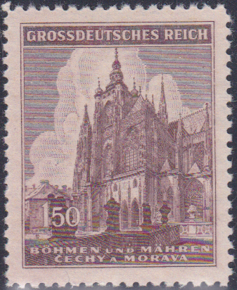 Ein Ergänzungswert zur Freimarkenserie "Adolf Hitler" zu 4,20 K (MiNr 142) ist die letzte erschienene Marke des Sammelgebietes Böhmen und Mähren.