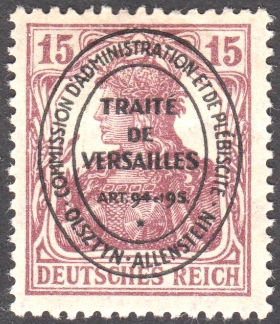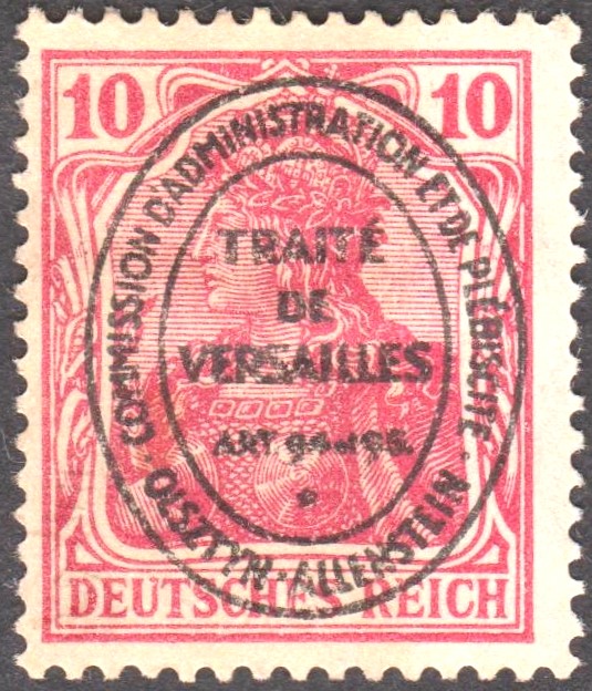Deutsches Reich MiNr. 101 wurde mit einem schwarzen Buchdruck-Aufdruck im Hochoval versehen und ist katalogisiert als Deutsche Abstimmungsgebiete - Allenstein MiNr. 17: