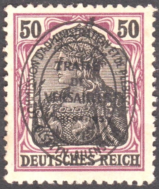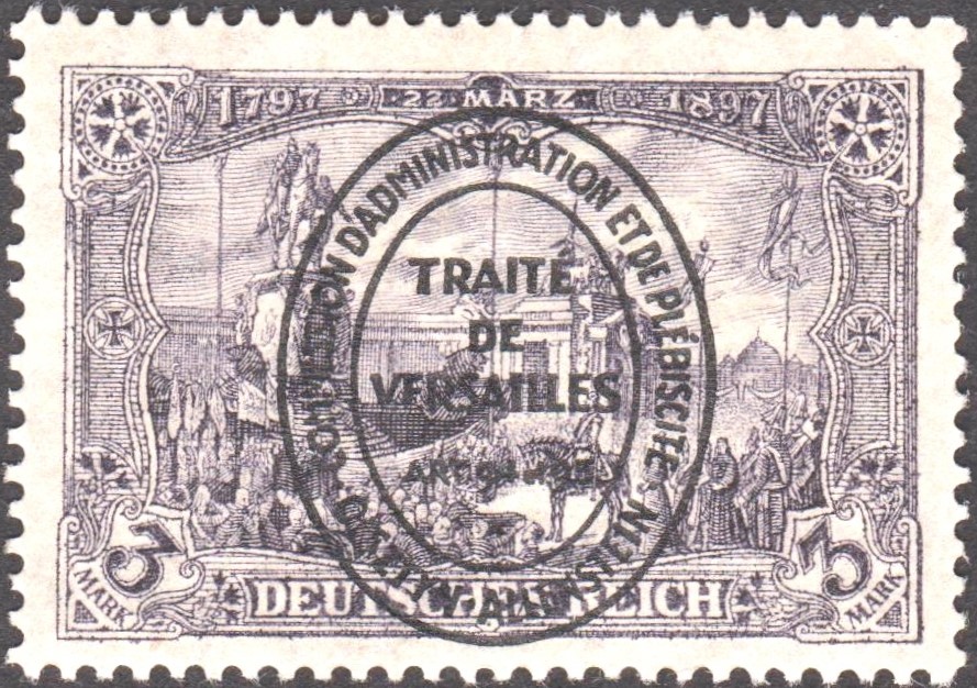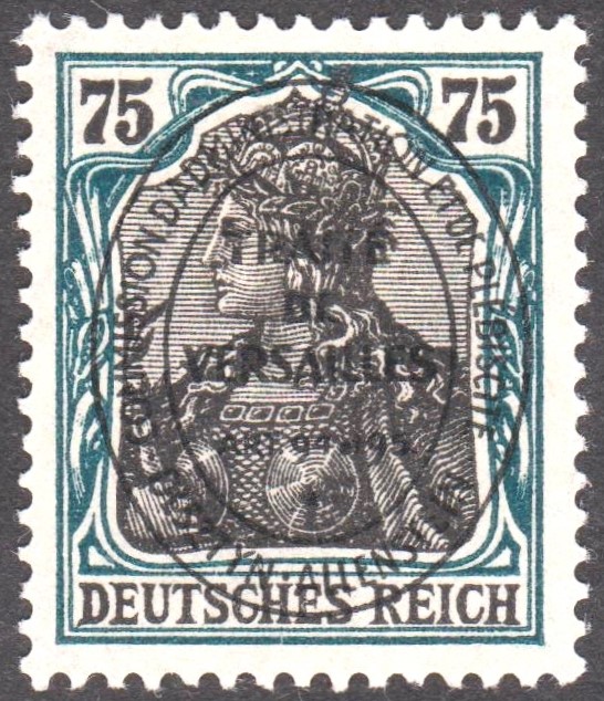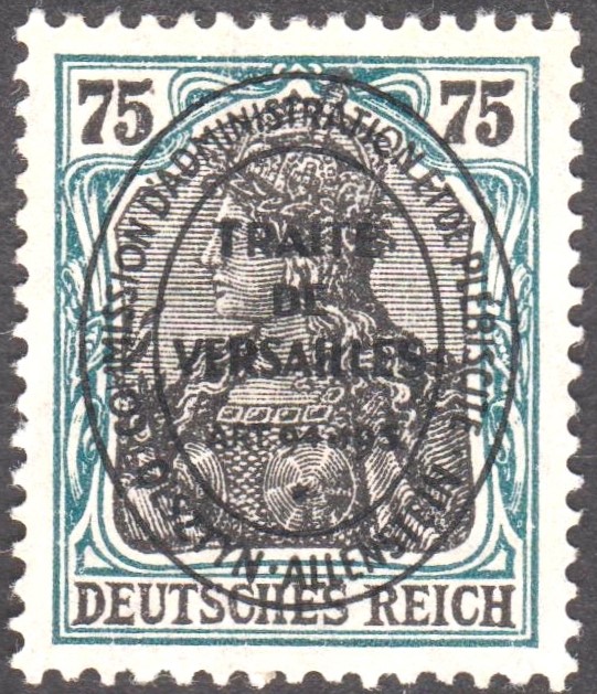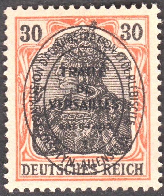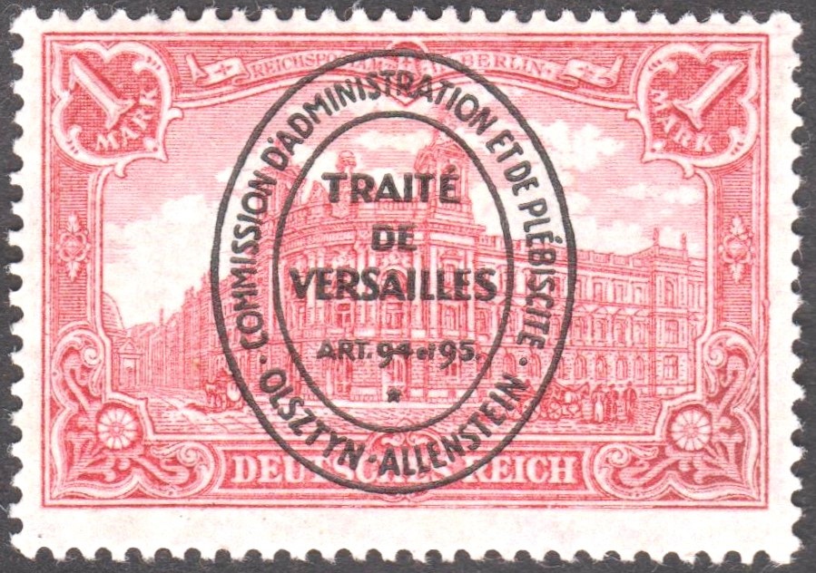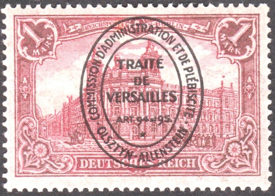 Deutsches Reich MiNr. 114 wurde mit einem schwarzen Buchdruck-Aufdruck im Hochoval versehen und ist katalogisiert als Deutsche Abstimmungsgebiete - Allenstein MiNr. 26: