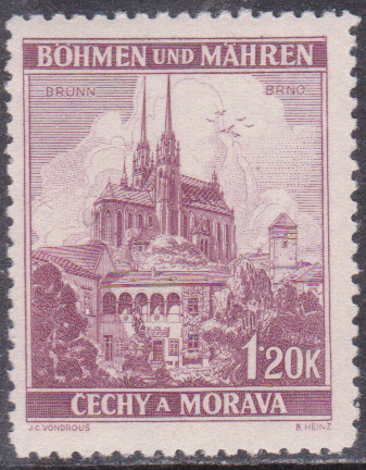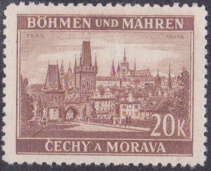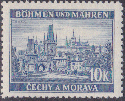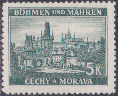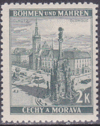 Die Marke Böhmen und Mähren (MiNr 33) bildet das Baťa-Hochhaus ab.