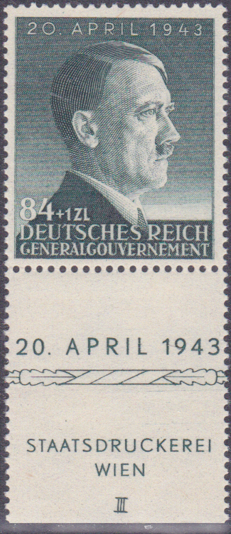 Zum 54. Geburtstag von Adolf Hitler sind 1943 drei Marken erschienen.