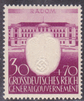Auf dieser Marke (MiNr 107) ist das Verwaltungsgebäude in Radom abgebildet.