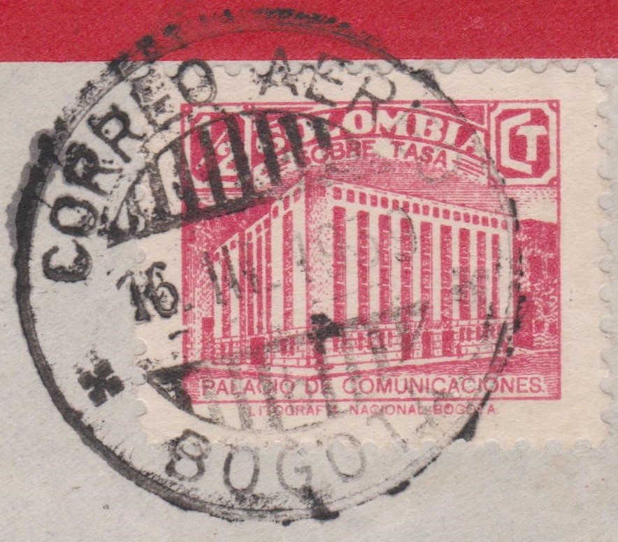 Bei diesem Postwertzeichen handelt es sich nicht um eine Zwangszuschlagsmarke, sondern um die "Freimarke zu Gunsten des Aufbaus von Gebäuden", Kolumbien MiNr. 639: