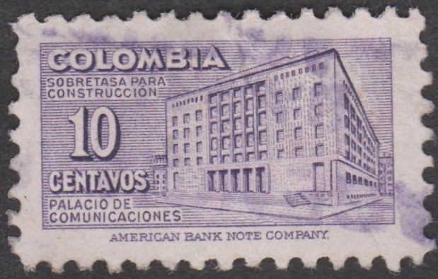 Kolumbien - Zwangszuschlagsmarke 10 CENTAVOS violett, MiNr. 46, erschien 1948: