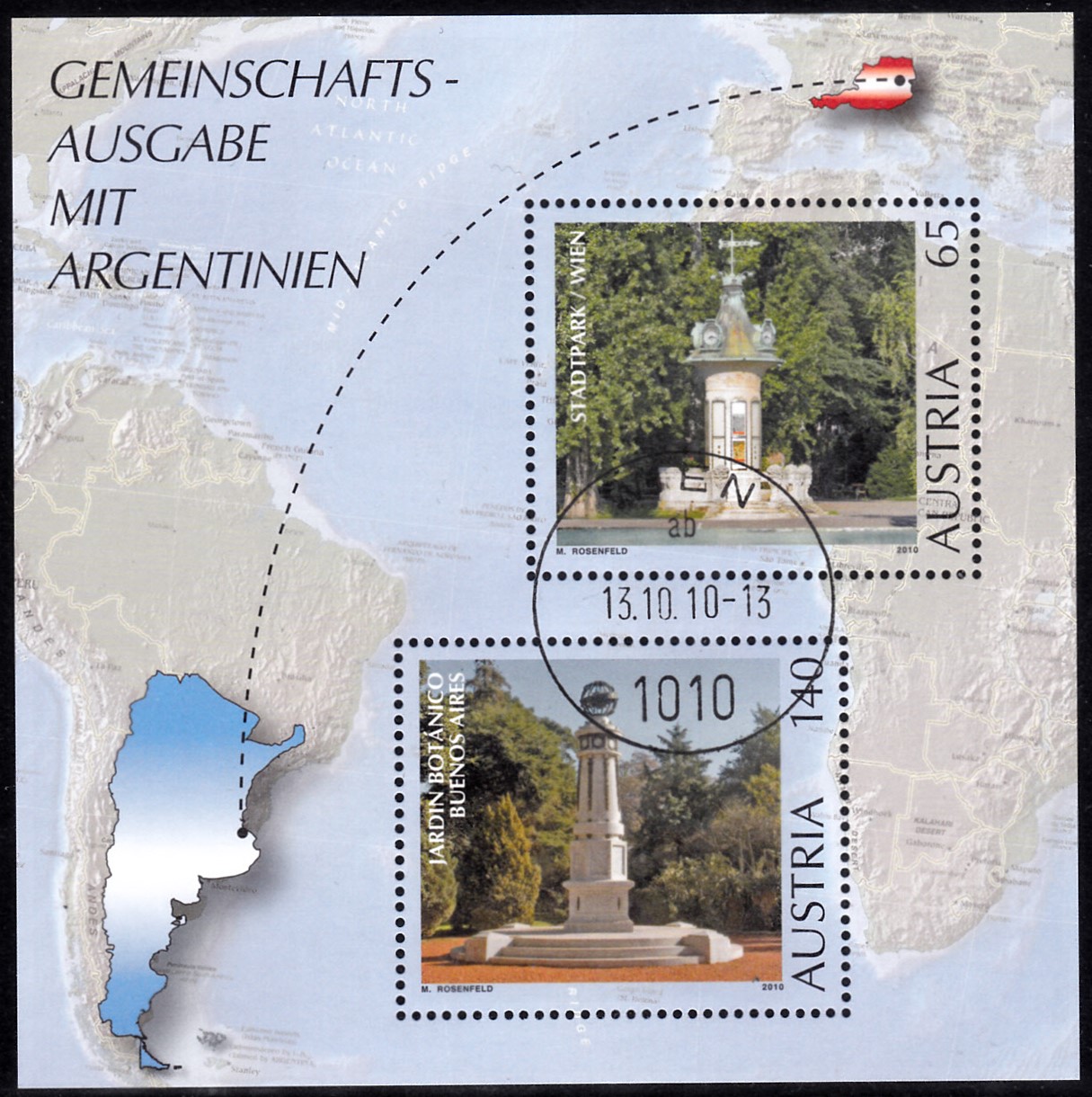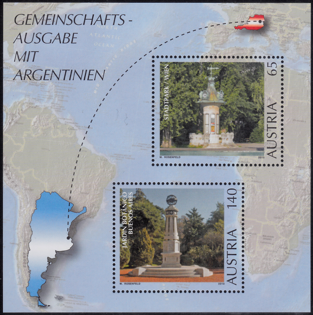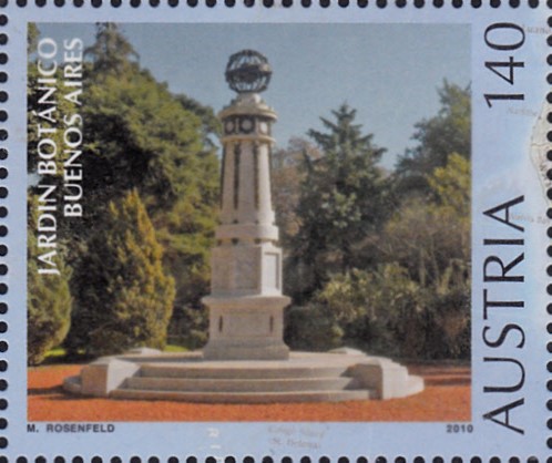 Auf einer Marke aus Österreich (MiNr 2898) ist eine Wetterstation der Österreichisch-Ungarischen Gemeinschaft im Botanischen Garten in Buenos Aires zu sehen.