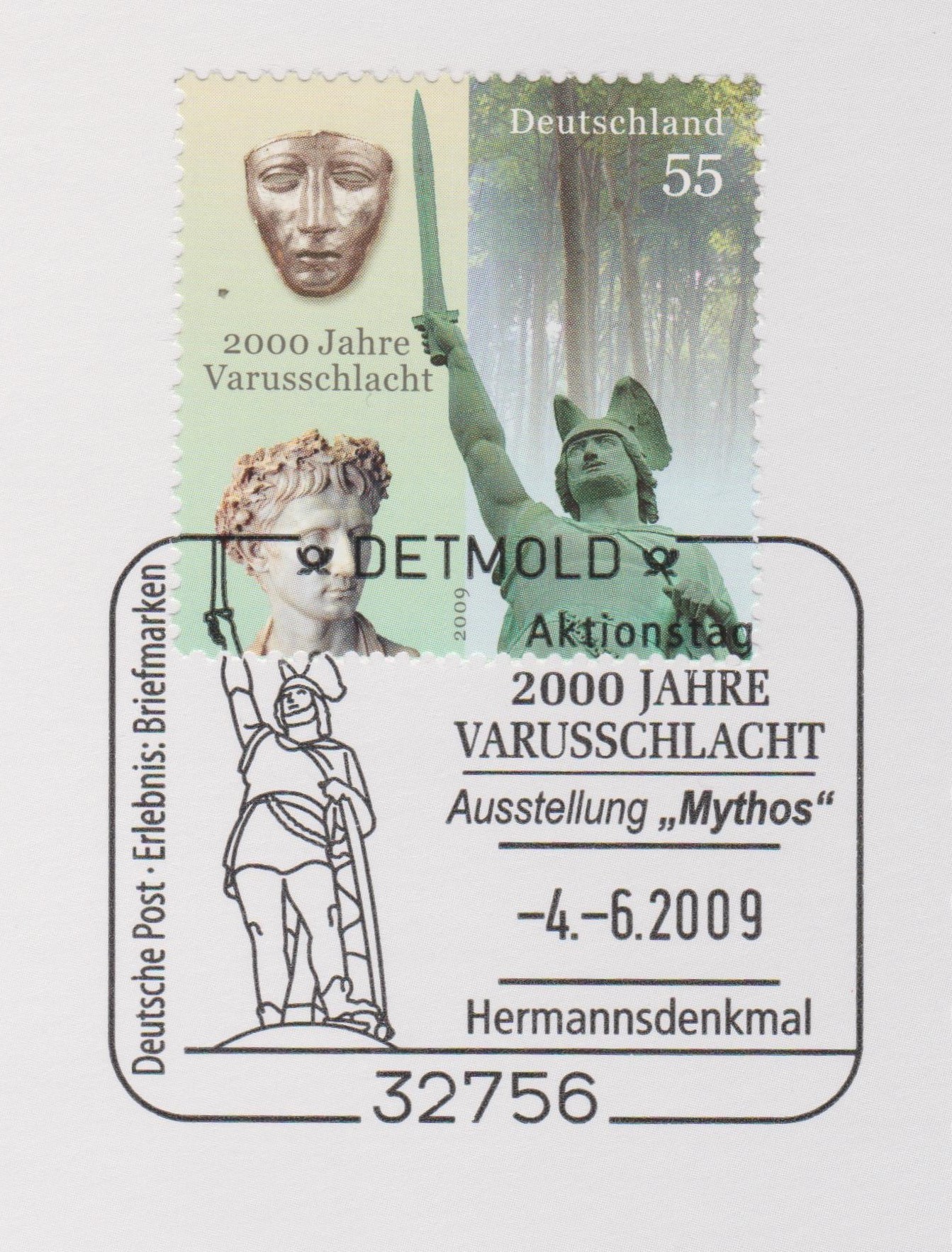 Deutschen Post MiNr. 2738 am 04.06.2009 (= Ersttag) entwertet mit thematisch passendem Sonderstempel "Aktionstag 2000 JAHRE VARUSSCHLACHT":