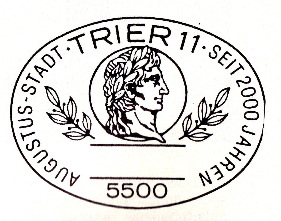 Die Stadt Trier ist römischen Ursprungs: Zu Füßen eines im Jahre 30 v. Chr. errichteten und nach wenigen Monaten wieder aufgegebenen Militärlagers auf dem Petrisberg gründeten die Römer spätestens im Jahre 16 v. Chr. eine Stadt, die sie Augusta Treverorum (Stadt des Kaisers Augustus im Lande der Treverer) nannten. Im Stempelentwurf zu diesem Handwerbestempel ist ein Kopfbild des Kaisers Augustus zu sehen.