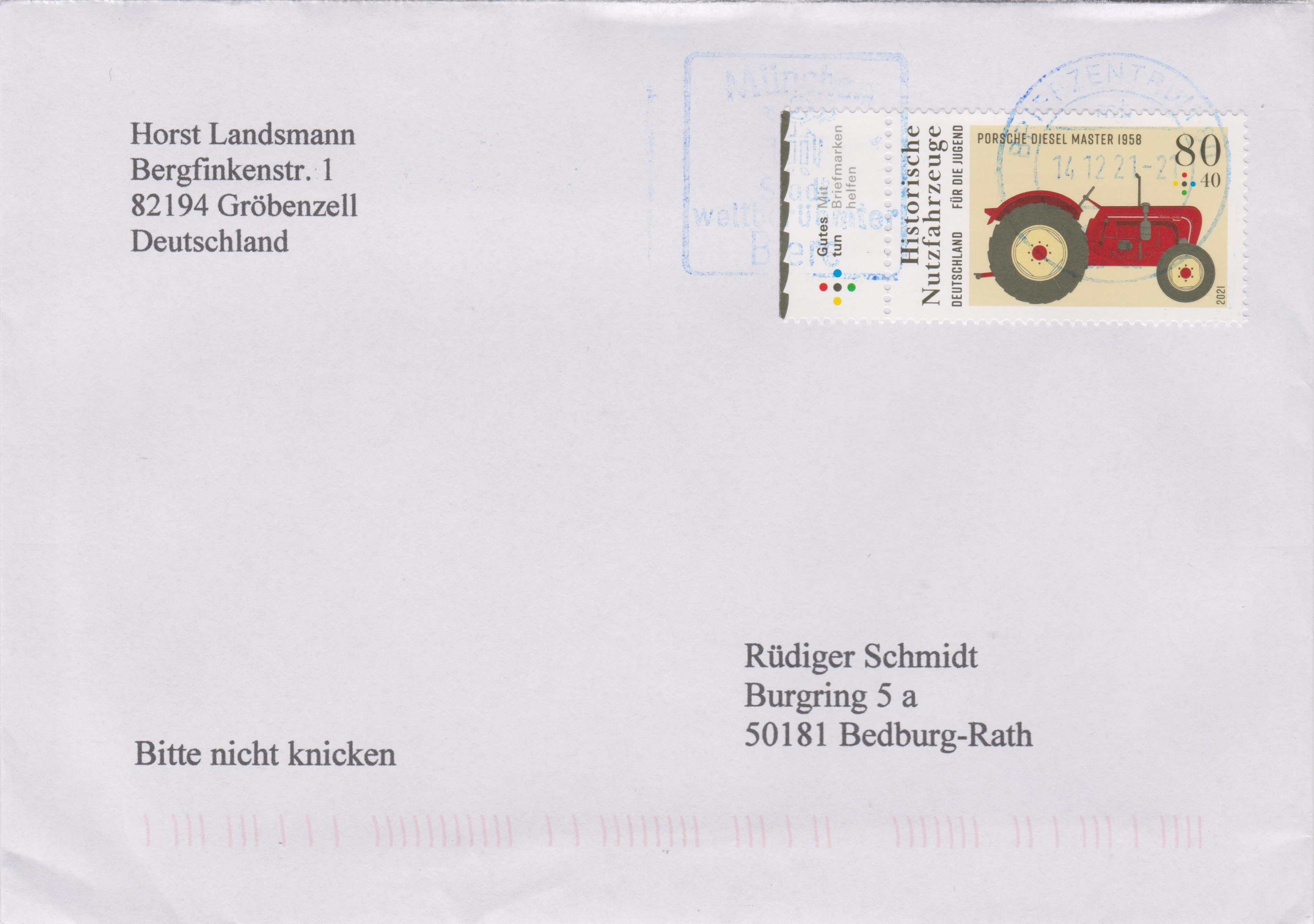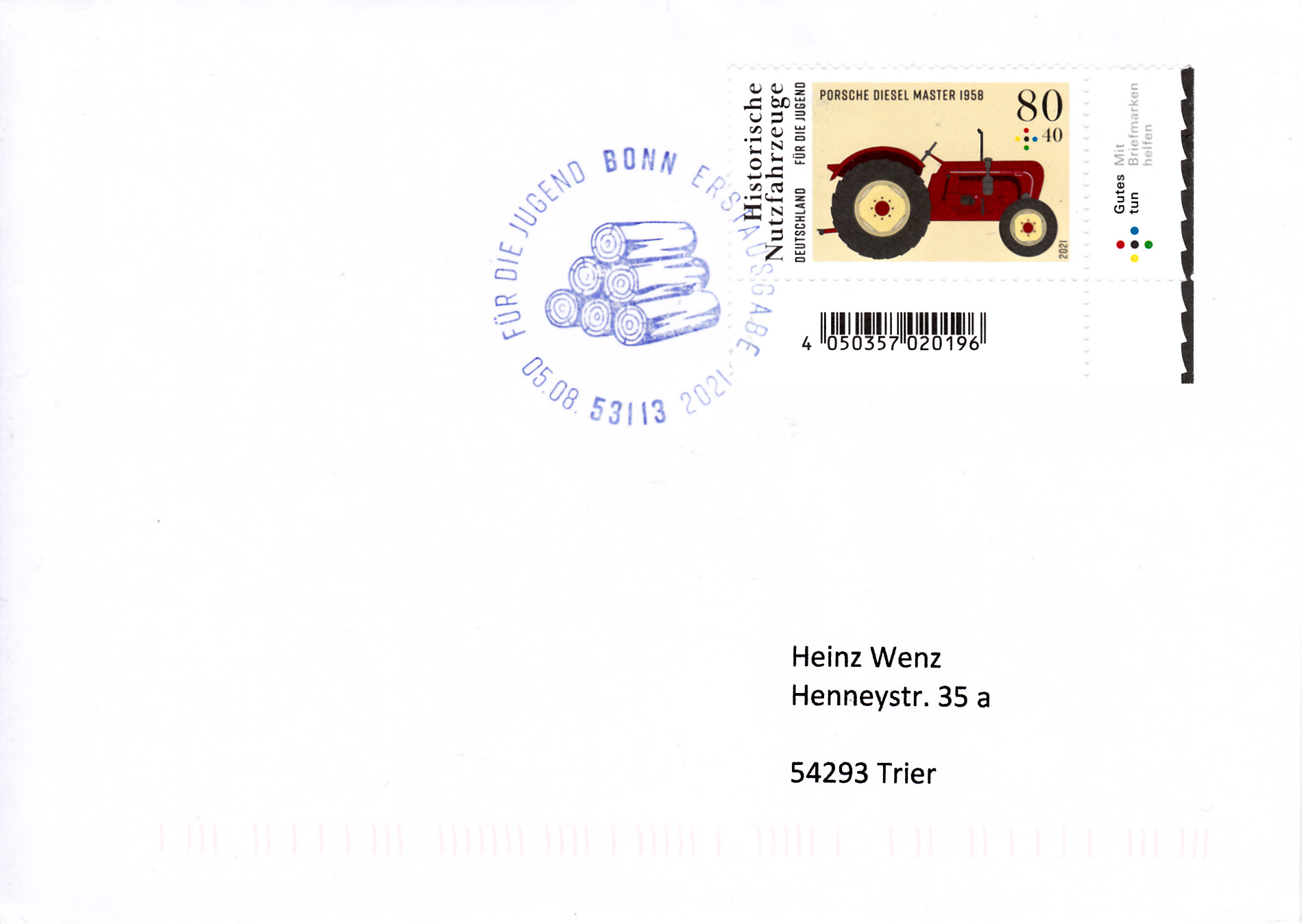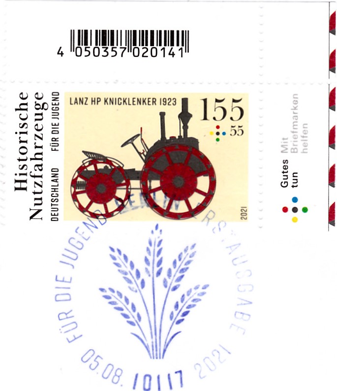 Im Sonderstempel aus Salzwedel vom 11.9.2021 zum Tag der Jungen Briefmarken ist ein Traktor ZT 300 abgebildet.