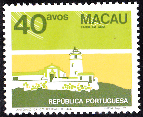 Der Leuchtturm von Guia ist auch Motiv einer weiteren Marke Macaus. Diese Marke ist 1982 in eriner Freimarkenausgabe "Gebäude" erschienen. Hier zeige ich eine Marke aus der ersten Auflage (MiNr 486 I) mit dem Druckvermerk "INCM Imp. 82" am rechten unteren Markenrand: