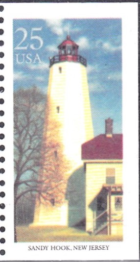 Diese Marke (MiNr 2089) der USA bildet den Sandy Hook Leuchtturm ab.