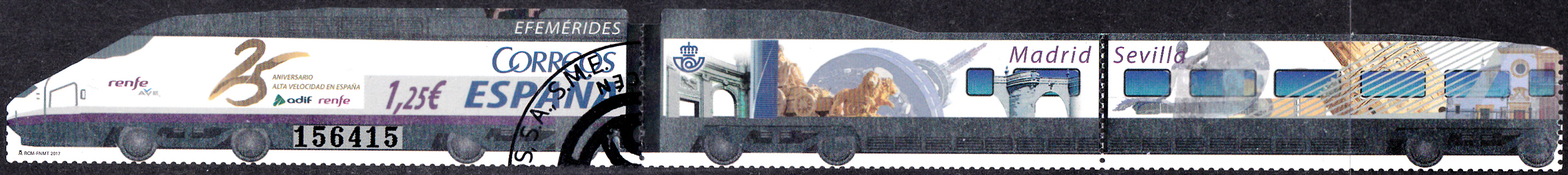 Zum Jubiläum "25 Jahre Schnellfahrstrecke Madrid-Sevilla" ist in Spanien ein nummerierter "Block" (MiNr Block 303) erschienen.
