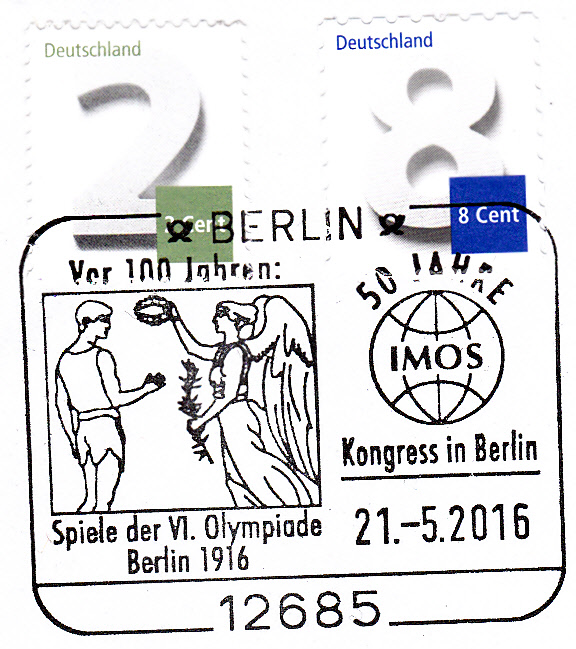 Sonderstempel aus Berlin vom 21.5.2016 zum Kongress der IMOS (Internationale Motivgruppe Olympiaden und Sport).