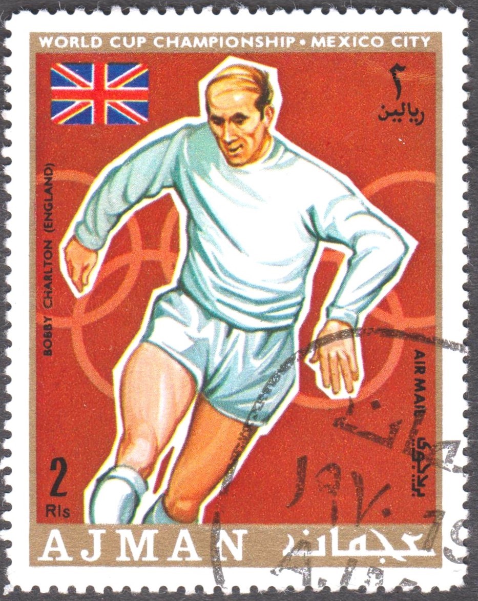 Es folgt noch eine Marke (MiNr 1960) mit einer Spielszene und den Emblemen des der Fußballverbände Großbritanniens und der Tschechoslowakei.
