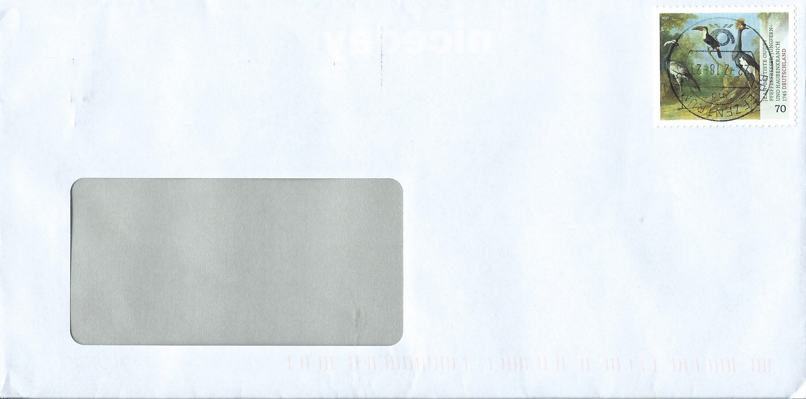 nicht nur die Werbeeinsätze der Stempelmaschinen können ab und an auf dem Kopf stehen, auch der Tagesstempel kommt mal in die Verlegenheit. Hier auf einem Brief, der im Briefzentrum 45 am 22.2.18 abgestempelt wurde. Kurioser Weise fehlt hier auch noch der Werbeeinsatz, da ist also alles schief gelaufen, was schief laufen kann…