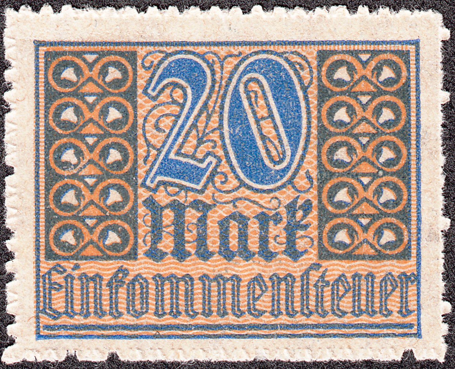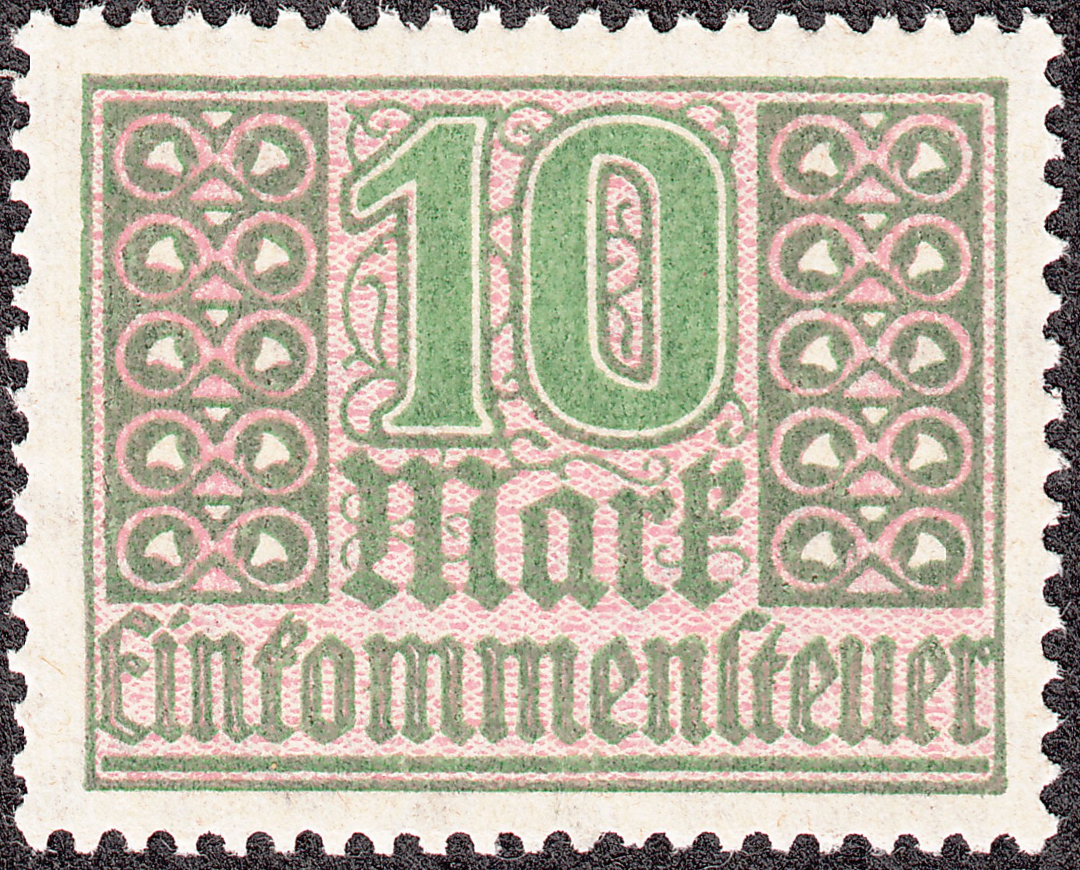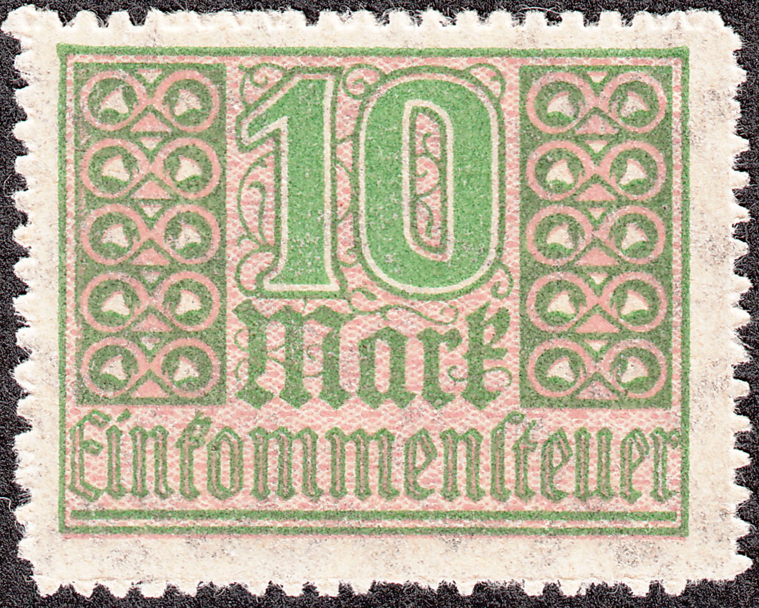Solche Marken mit der Inschrift "Einkommensteuer" wurden um das Jahr 1922 im Deutschen Reich fiskalisch verwendet: