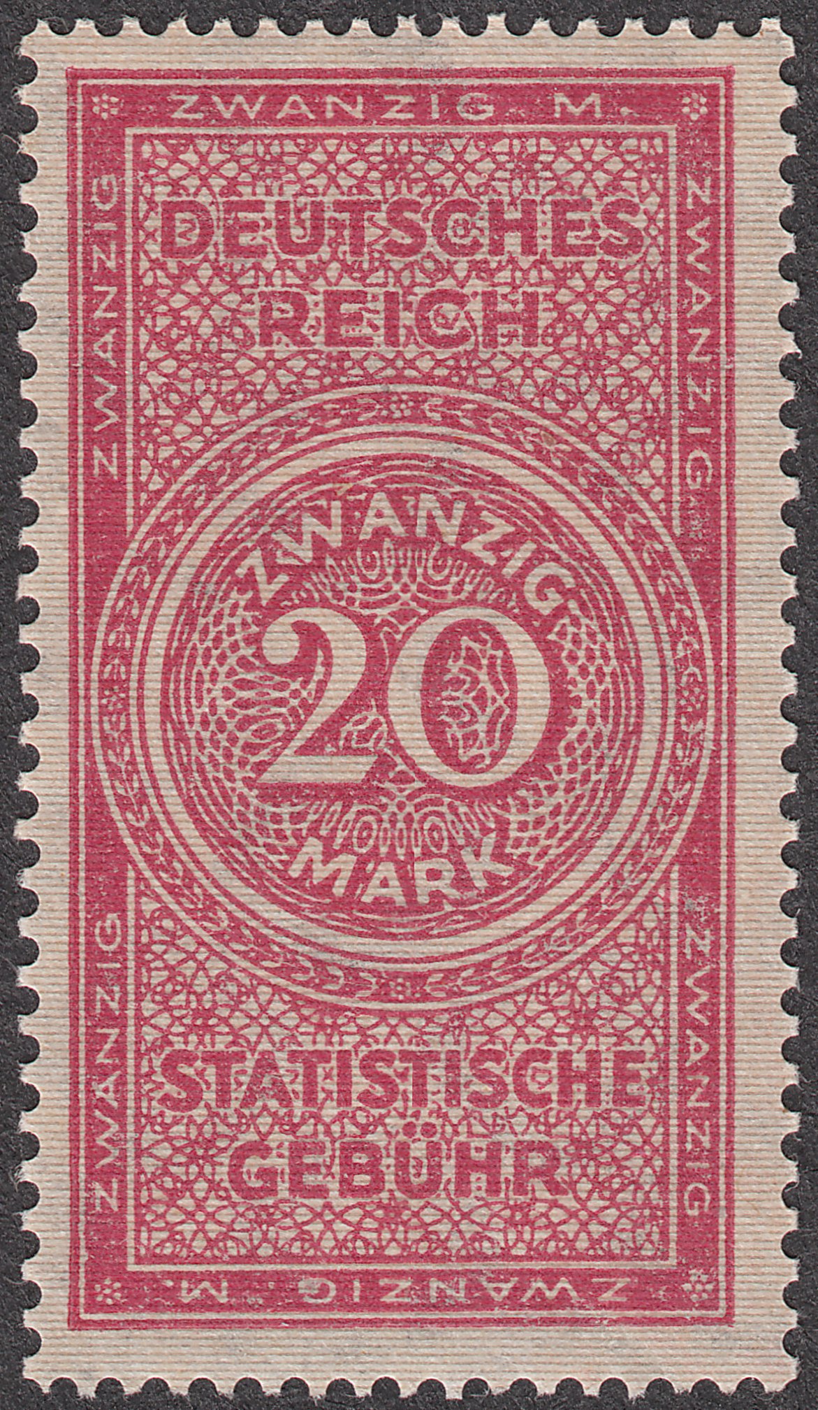 DEUTSCHES REICH 20 MARK STATISTISCHE GEBÜHR