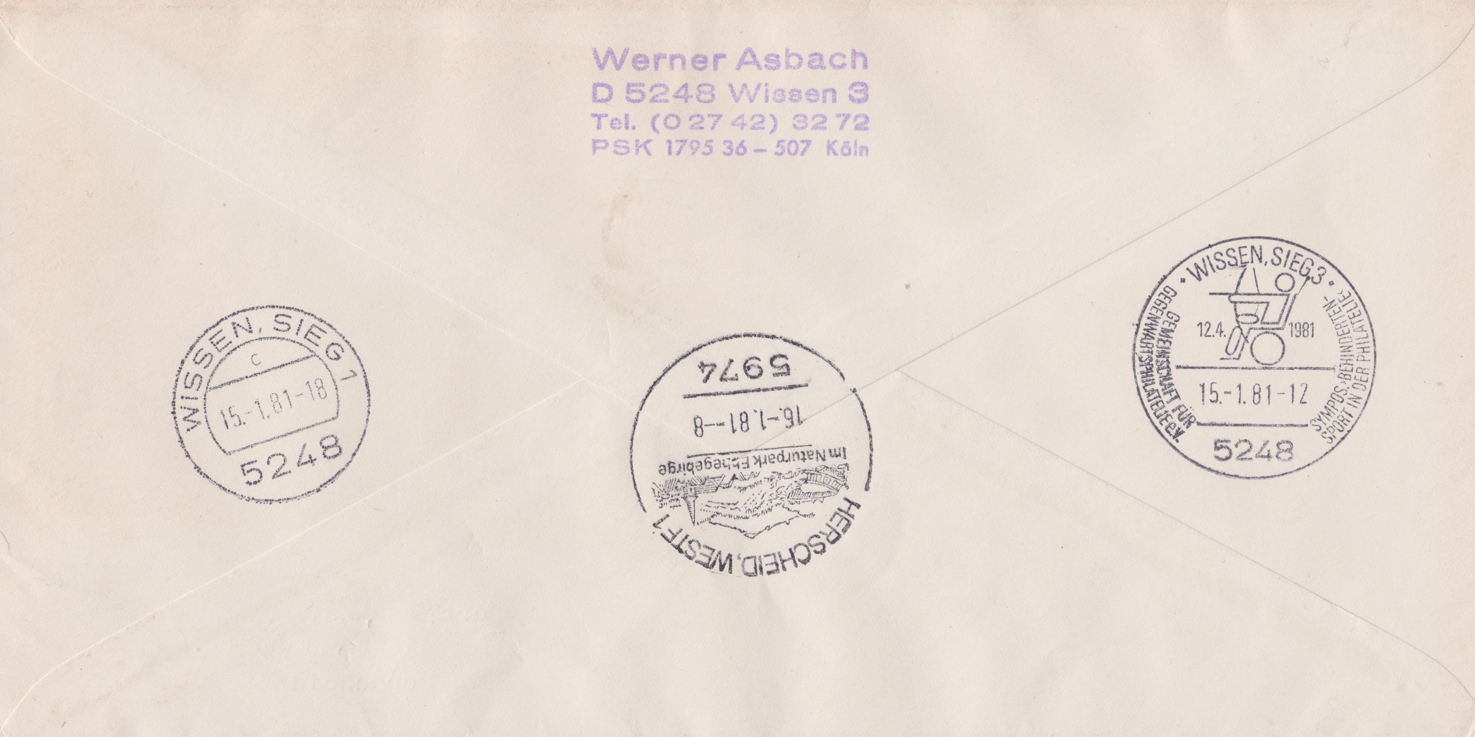 Es handelt sich übrigens um einen FDC, denn die MiNr. 1084 erschien am 15.01.1981 in einer Auflage von 31.000.000 Stück.