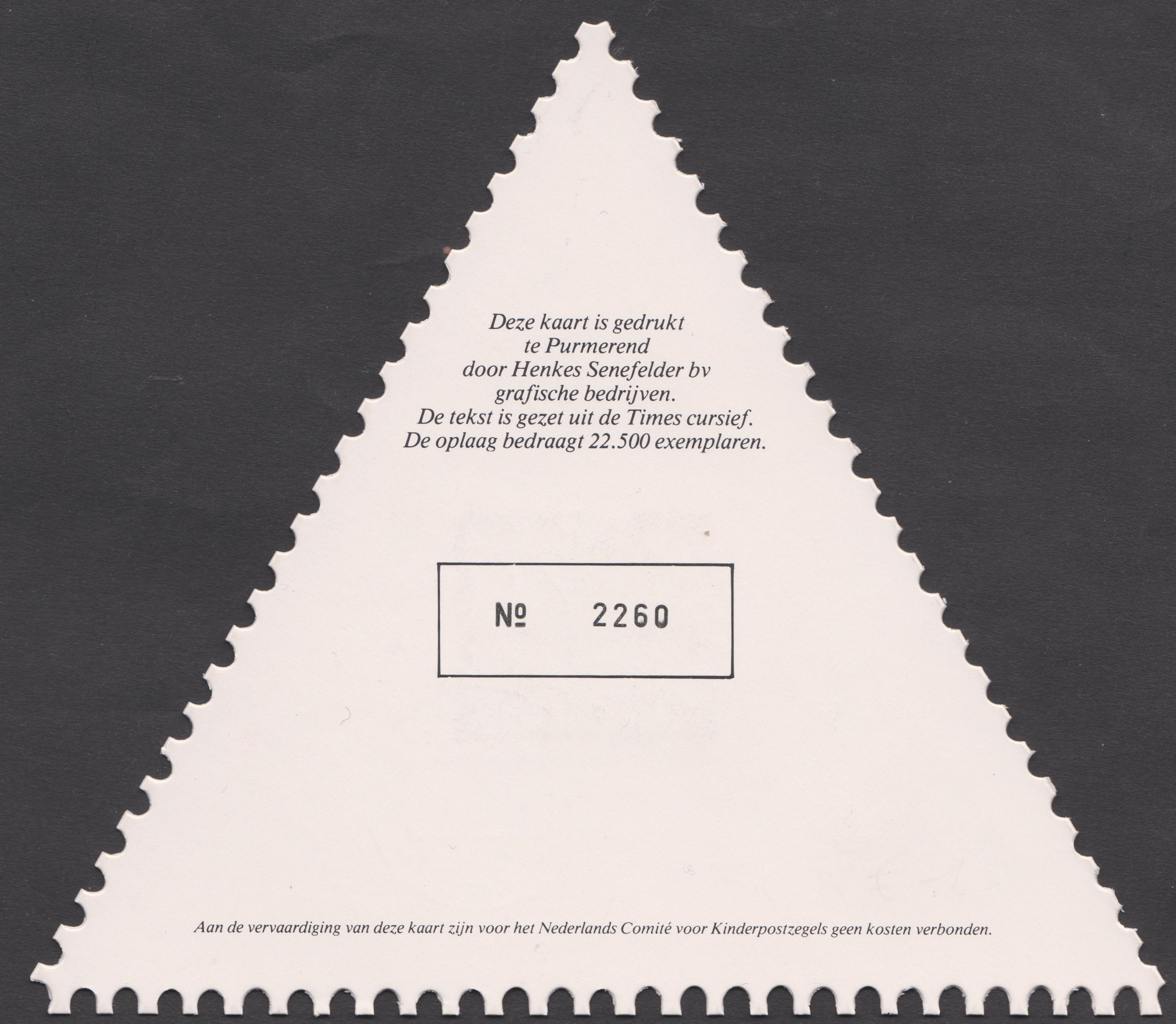 Die hier gezeigte Karte mit Niederlande MiNr. 1281, gestempelt am 13.11.1985 = Ersttag, hatte eine Auflage von immerhin 22.500 Stück und trägt die Nummer "2260".