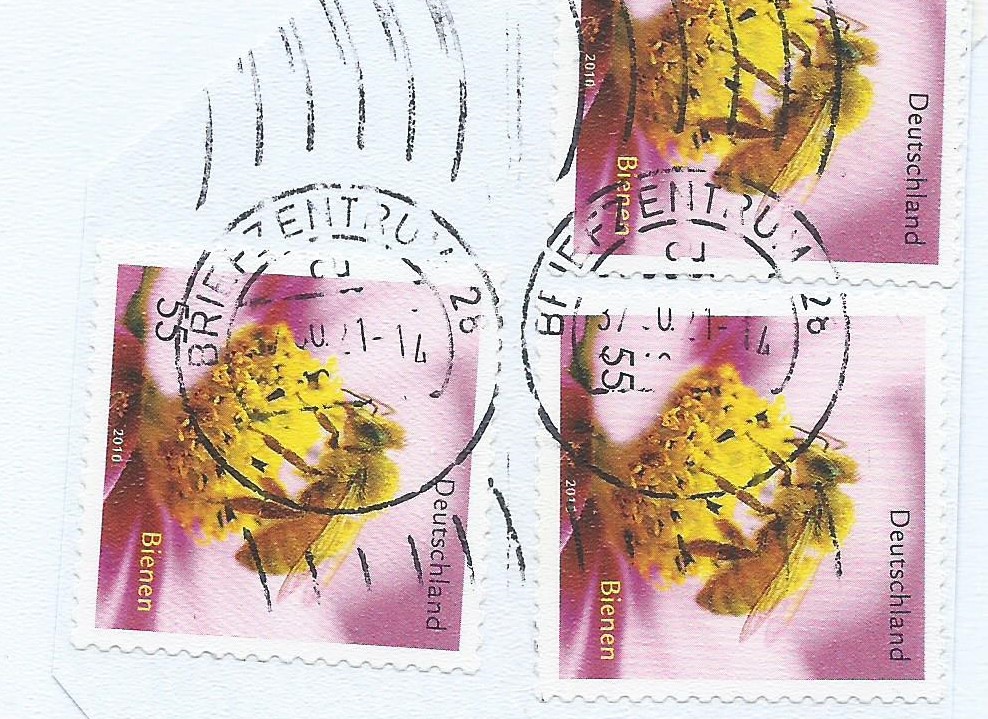 Den Anfang macht Westfehmarn mit einem neuen Datum: 1.17.90 auf der Frauen-Marke 10 Pf. Der liegt mir sogar gleich auf 2 Briefausschnitten vor. Da haben die Postler glatt mal 5 Monate Zuschlag gegeben…