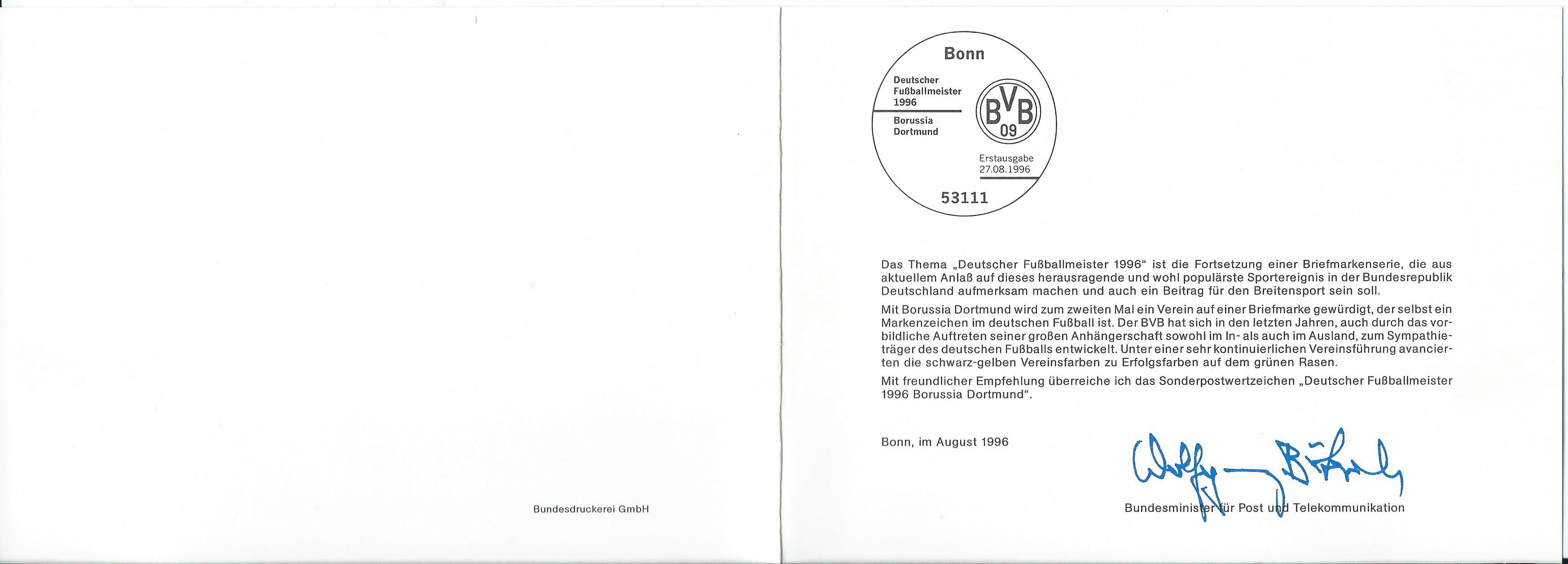 Die nächsten beiden Ministerkarten stelle ich etwas widerwillig ein, dem Verein kann ich so gar nichts abgewinnen Deutscher Fussballmeister 1995 Borussia Dortmund vom 6.12.95: