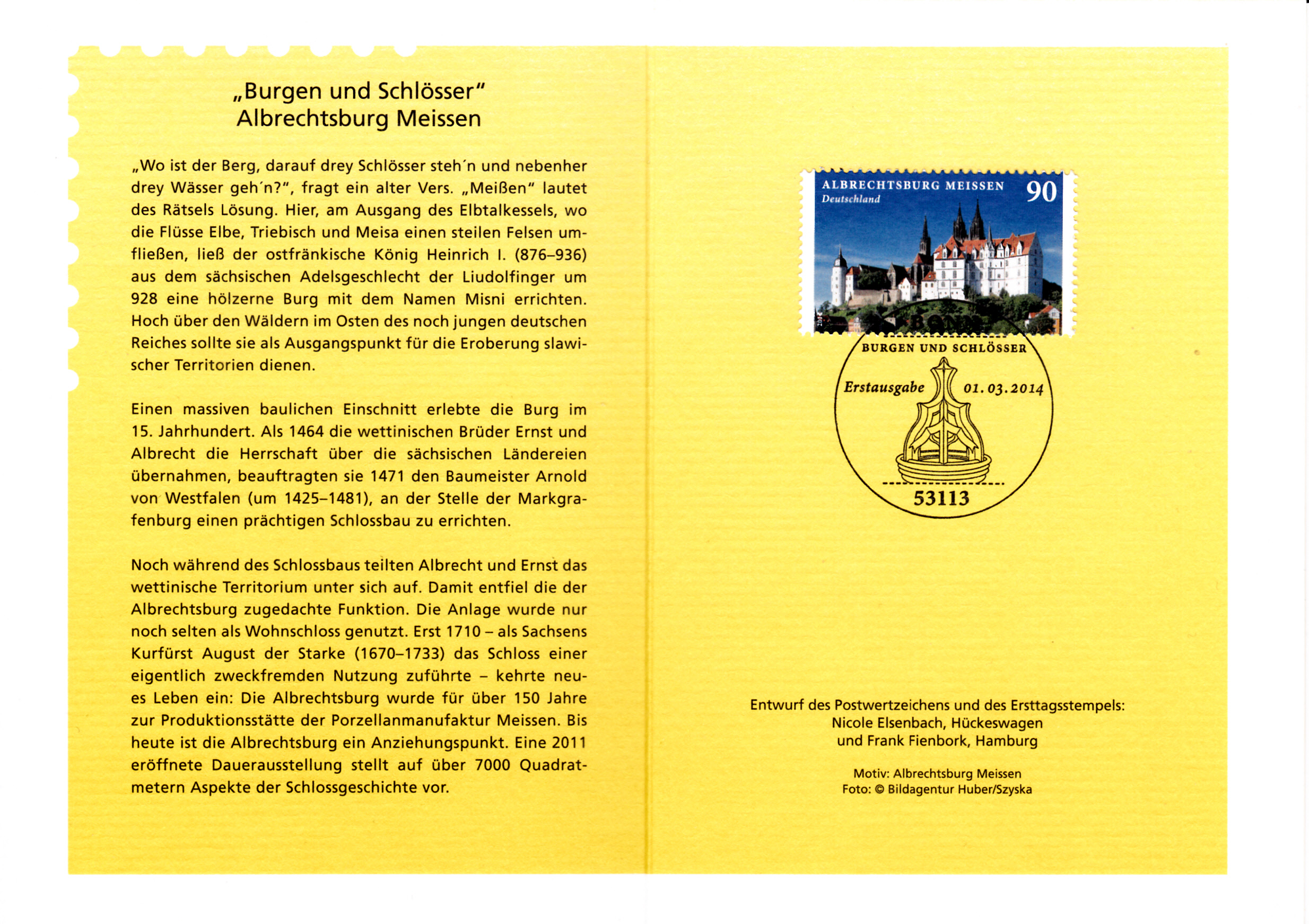 Klappkarte des Vorstandsvorsitzenden der Deutschen Post AG mit der Marke der Deutschen Post (MiNr 3062) "Albrechtsburg in Meißen" aus der Serie "Burgen und Schlösser" und dem Ersttagsonderstempel Bonn.