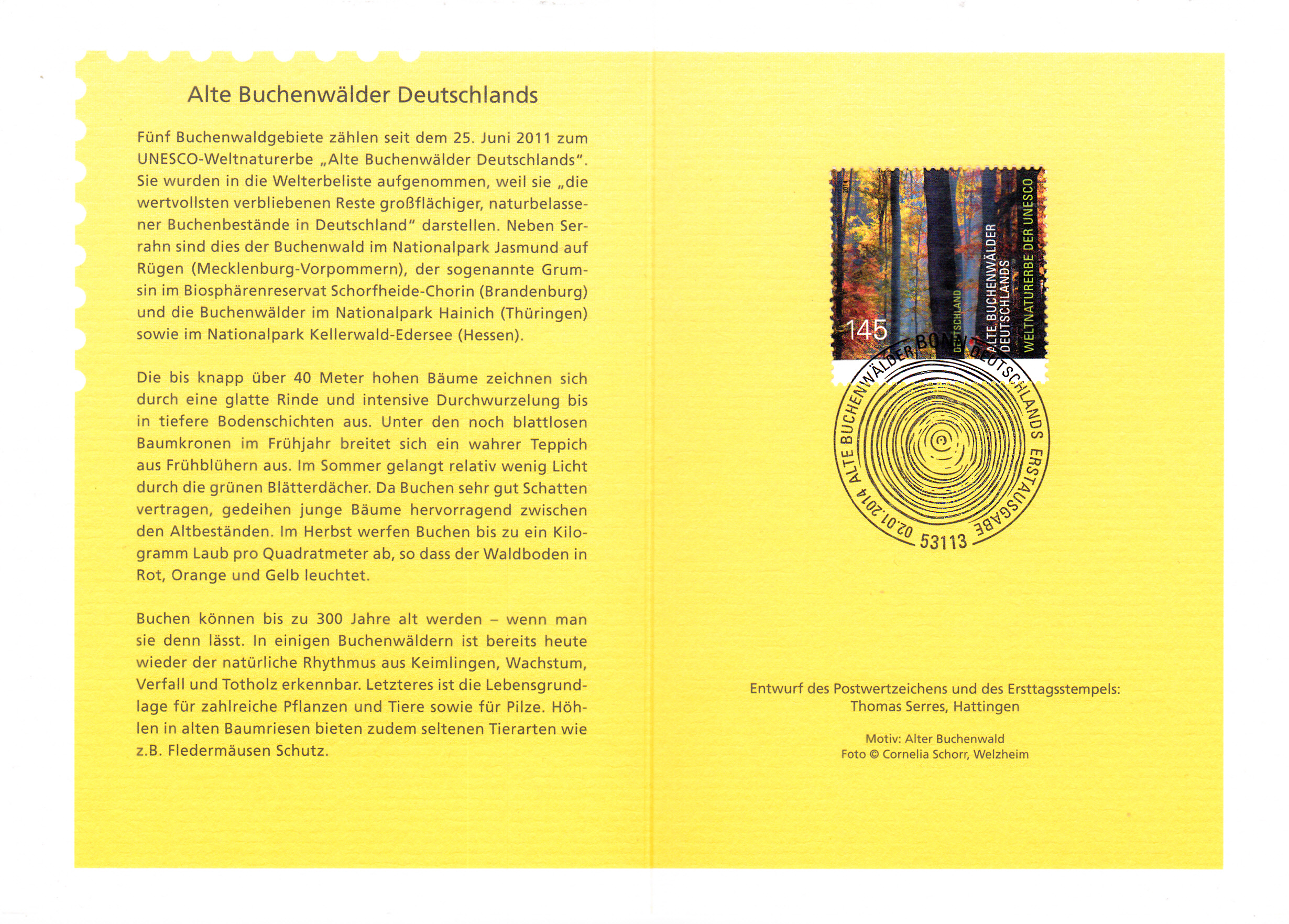 Klappkarte des Vorstandsvorsitzenden der Deutschen Post AG mit der Marke der Deutschen Post (MiNr 3052) "Alte Buchenwälder Deutschlands" und dem Ersttagsonderstempel Bonn.