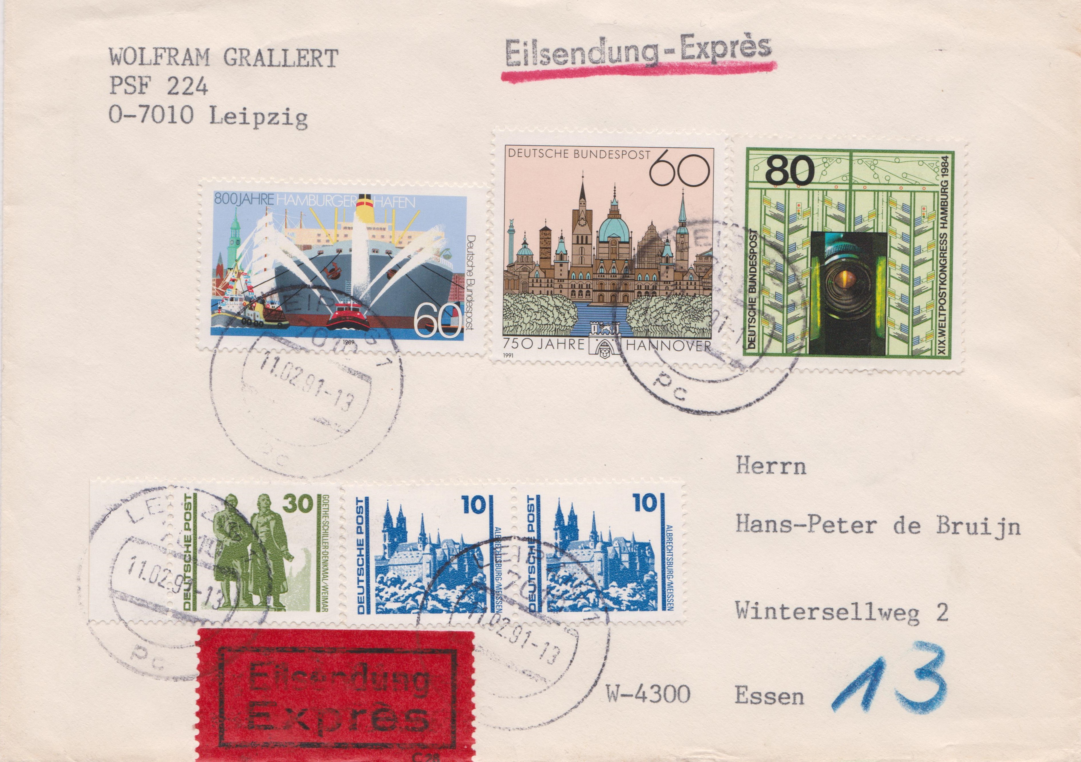 Hier zeige ich Euch als ein solches Beispiel einen Brief als Eilsendung von Leizig nach Essen: