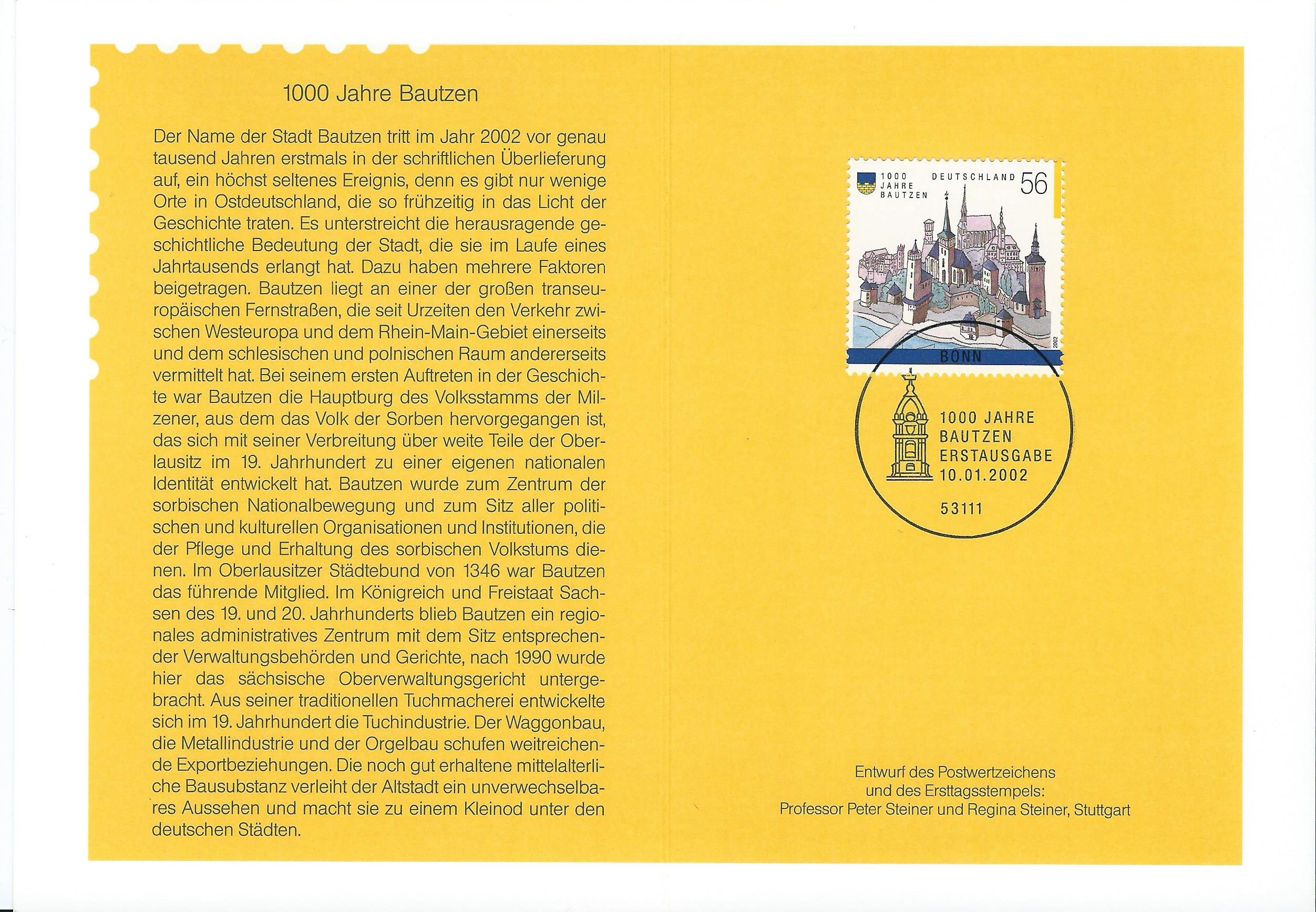 Den Anfang macht eine "Zumwinkel"-Karte der Mi.Nr. 2245 mit dem Anlass 1000 Jahre Bautzen
