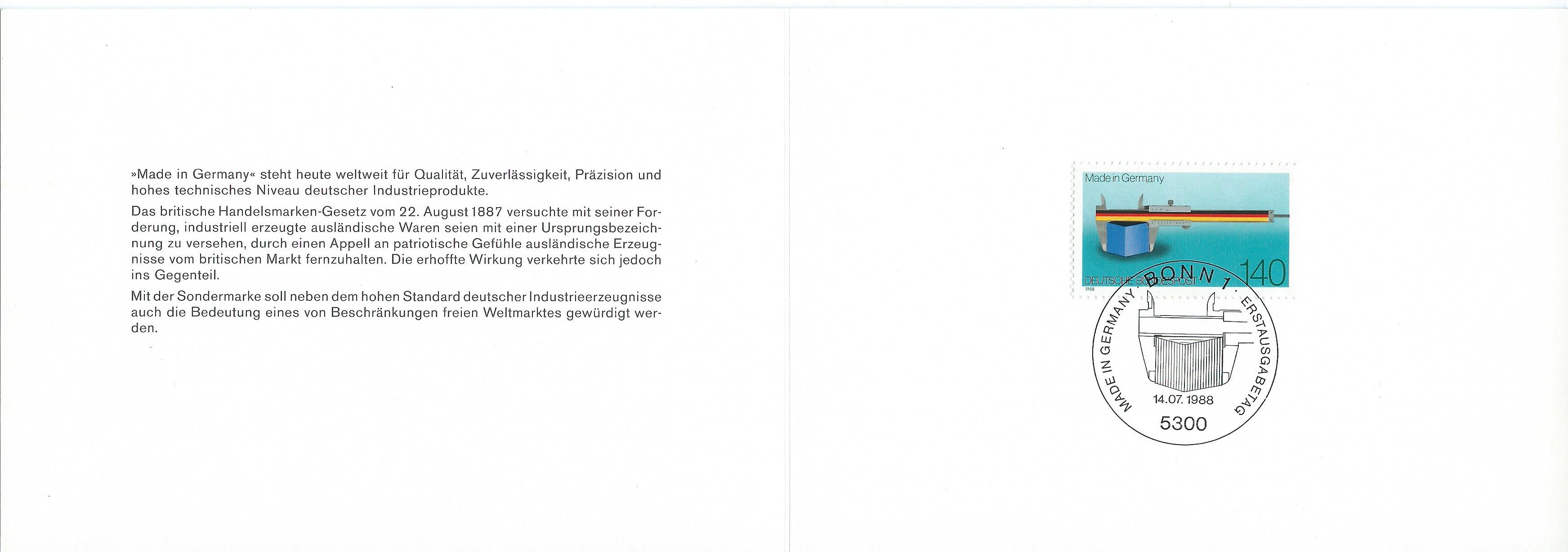 Hier eine Ministerkarte von Dr. Schwarz-Schilling, allerdings ohne Autogramm. Ausgabeanlass 100 Jahre Herkunftsbezeichnung "Made in Germany" auf Mi.Nr. 1378: