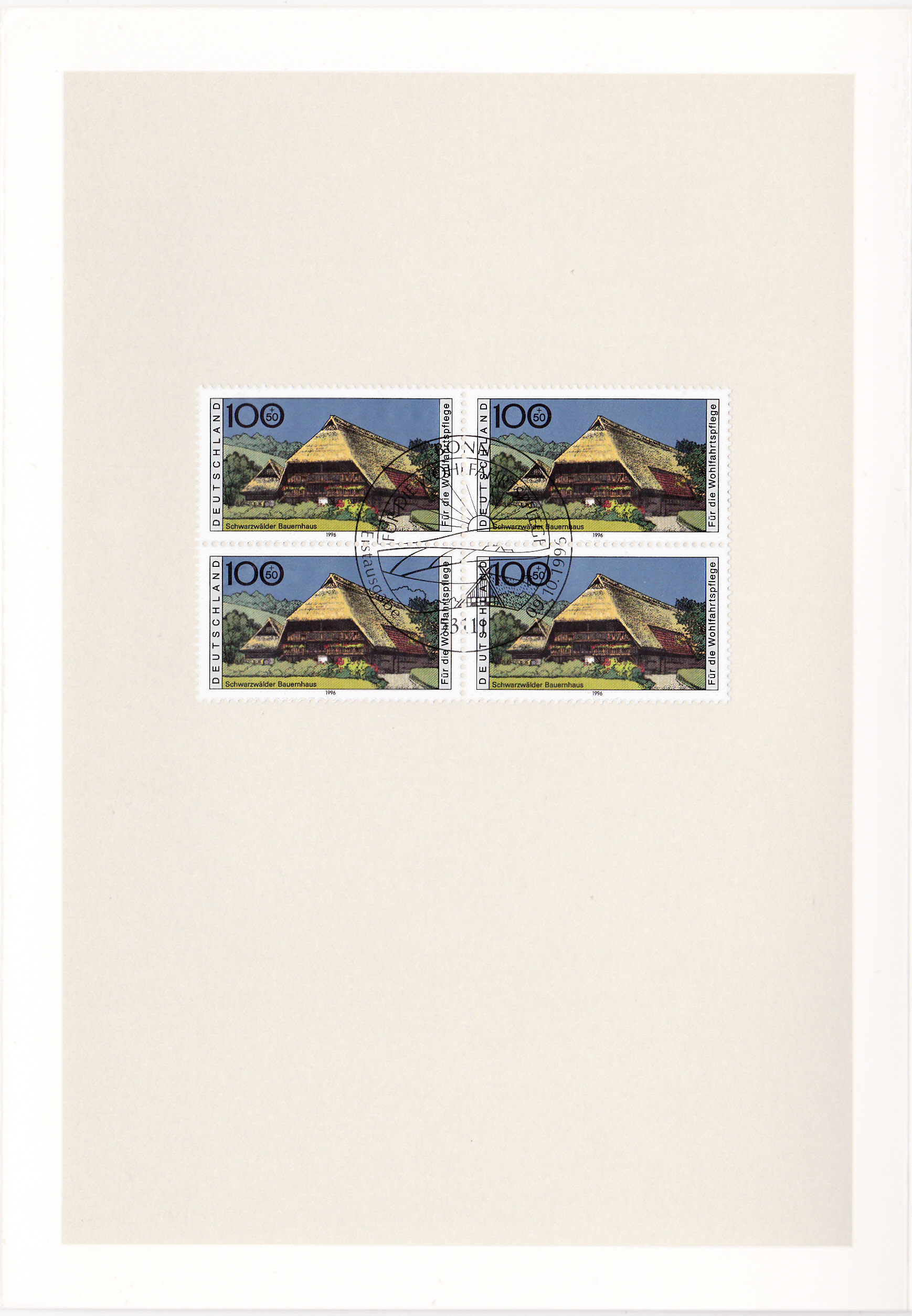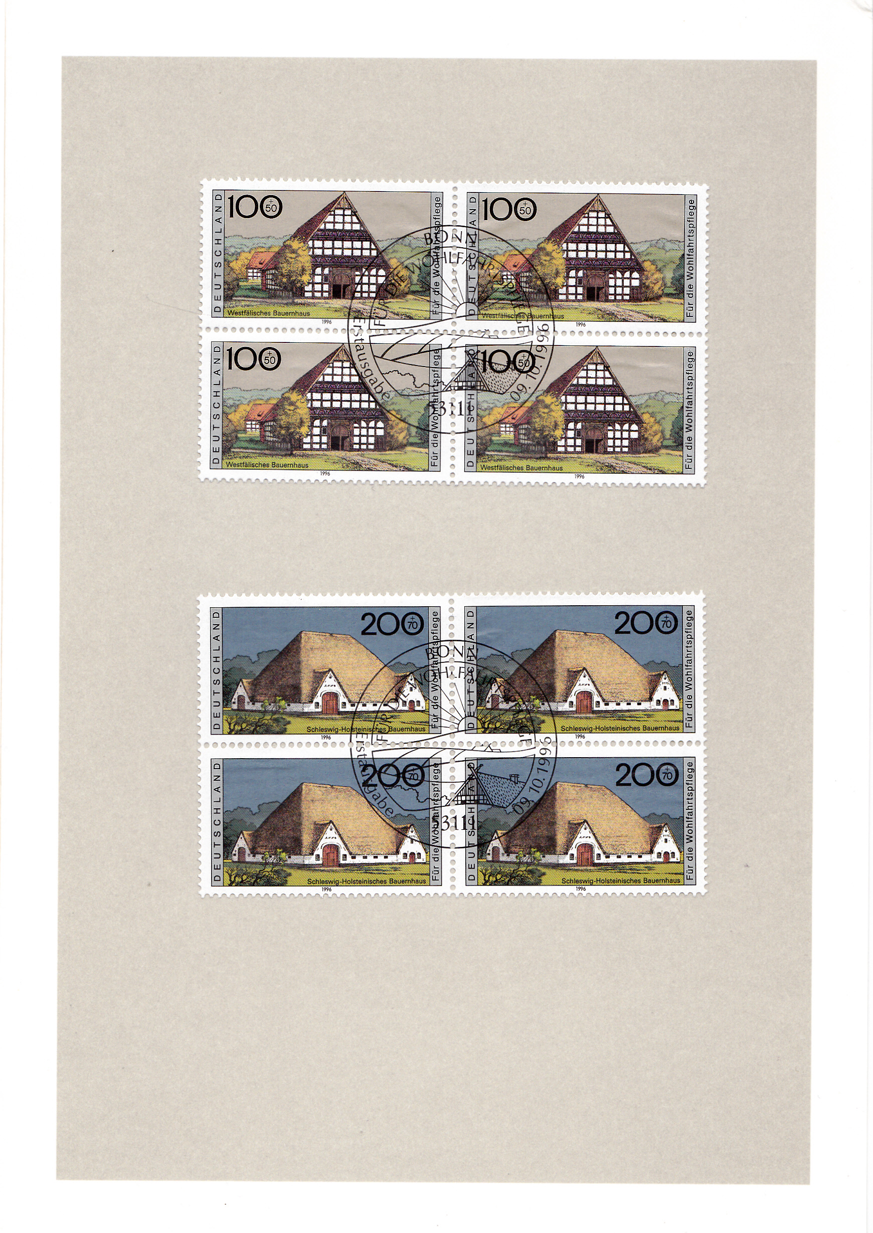 Hier mal wieder eine etwas ältere Ministerkarte aus der Amtszeit des Bundesministers für Post und Telekommunikation Wolfgang Bötsch. Wie zu der damaligen Zeit bei Zuschlagsmarken üblich, wurden hier die Wohlfahrtsmarken 1997 in Viererblöcken eingeklebt. Die Karte ist nach dem Auseinanderklappen dreiteilig. Für die Weihnachtsmarken gab es eine zweite Klappkarte, die einfach innen beigelegt war, daher bezieht sich der Text auf der Vorderseite auf beide Ausgaben. Die Karte mit den Weihnachtsmarken liegt mir aber zur Zeit nicht vor.