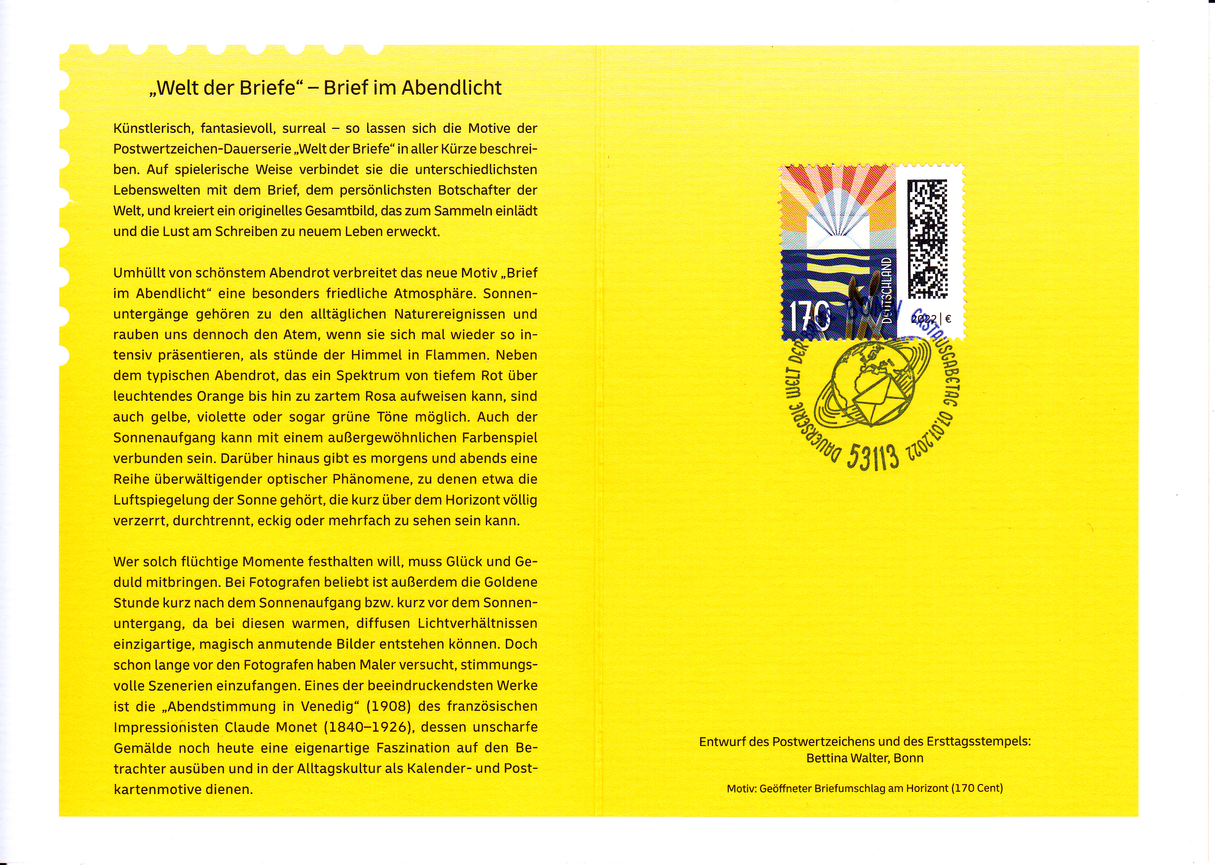 Ergänzend zu der bereits gezeigten farbige Ministerkarte des Bundesministers für Finanzen folgt nun auch die weiße Ministerkarte mit zwei Marken "G7-Präsidentschaft Deutschlands 2022" (MiNr 3694) und den beiden Ersttagsonderstempel Bonn und Berlin.