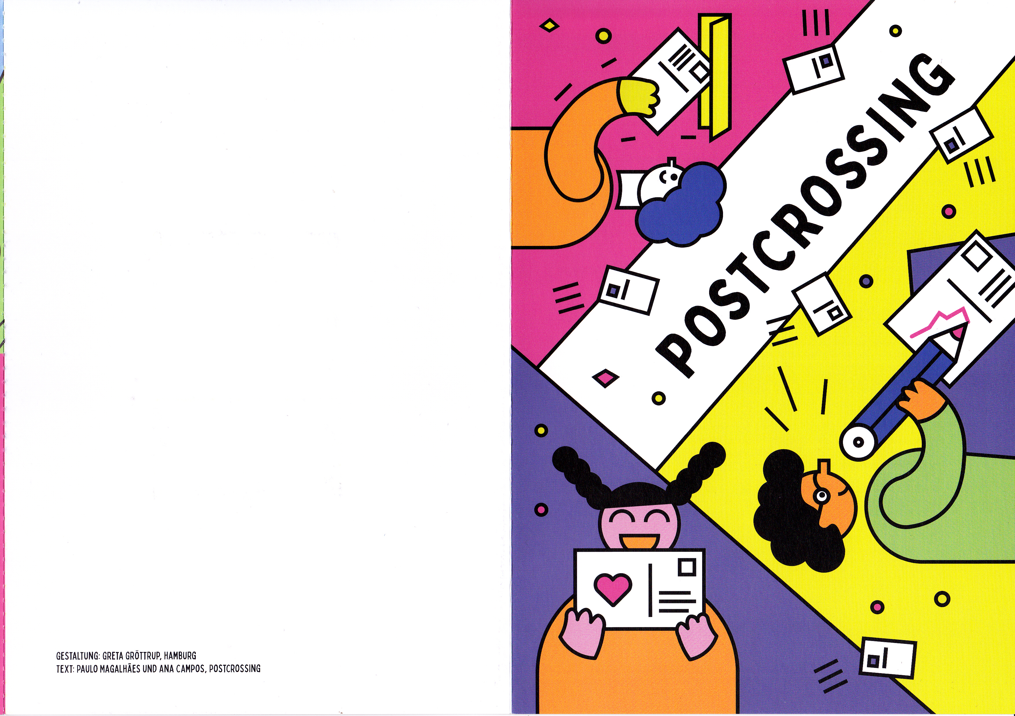 Diese Klasppkarte besitzt noch einen dritten Teil. Er besteht aus zwei Postkarten, die durch perforiert sind, damit sie leicht abgetrennt und verschickt werden können.
