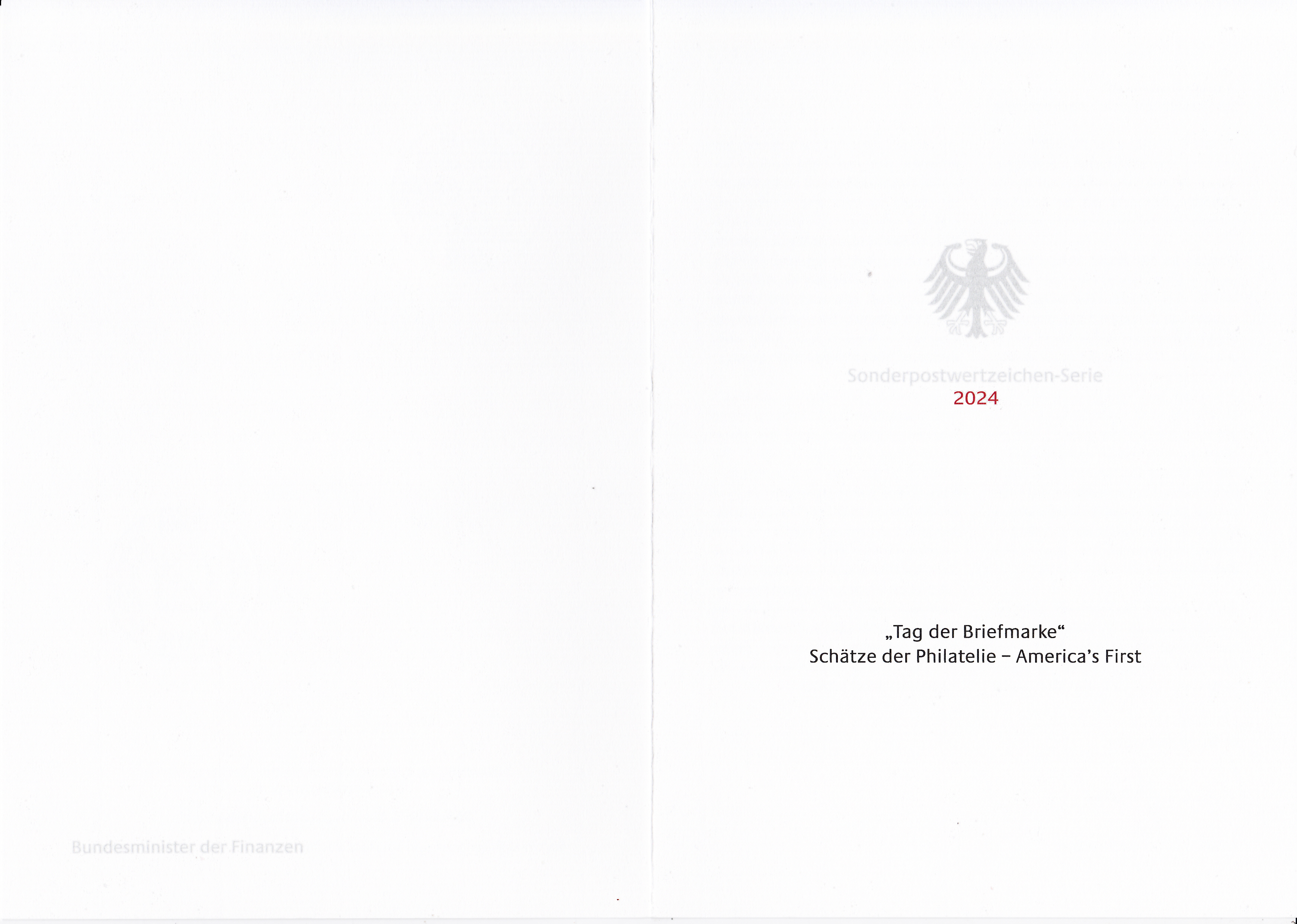 Ministerkarte des Bundesministers für Finanzen mit zwei Marken (MiNr 3822) zum Tag der Briefmarke 2024 und den beiden Ersttagsonderstempel Bonn und Berlin.
