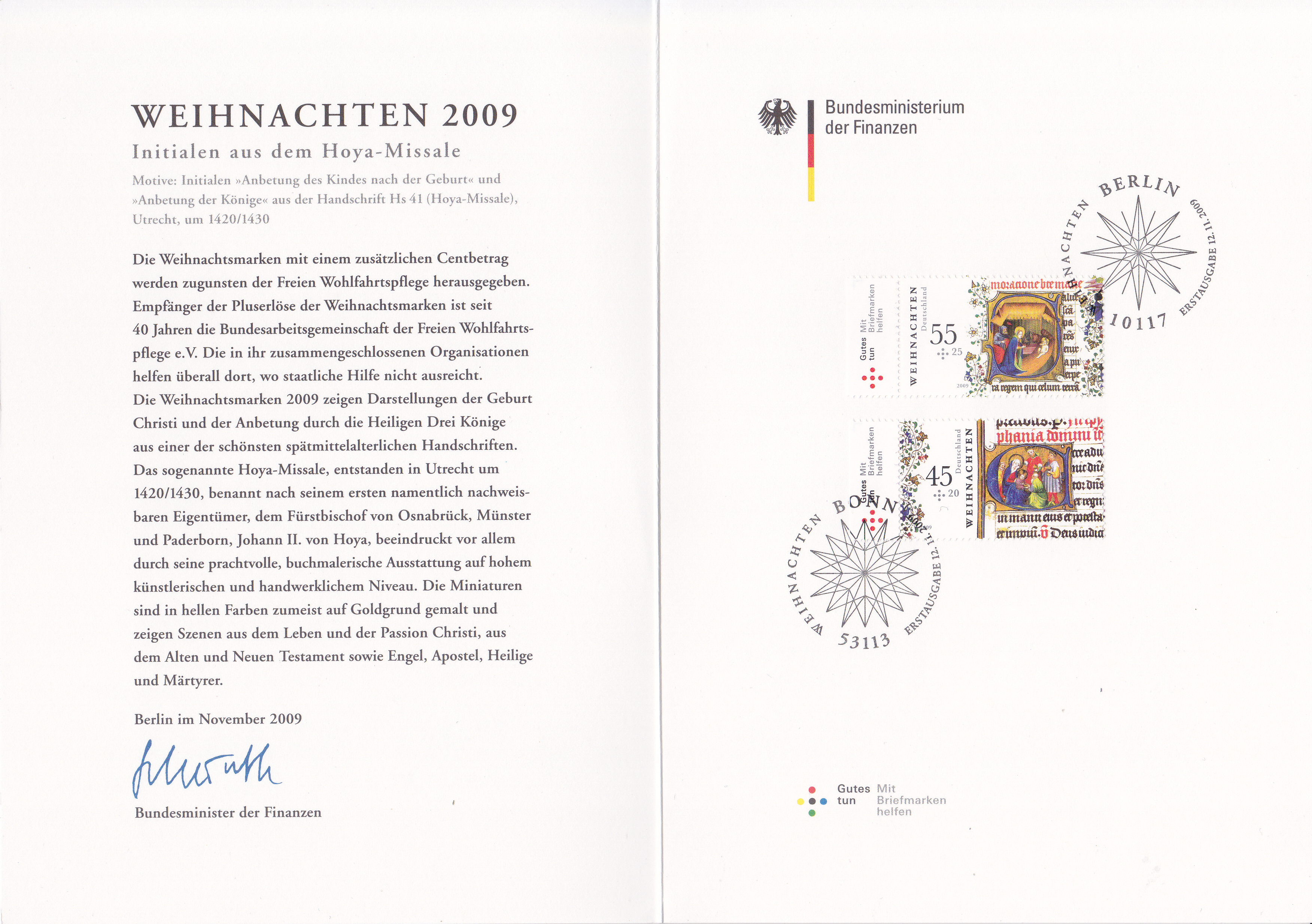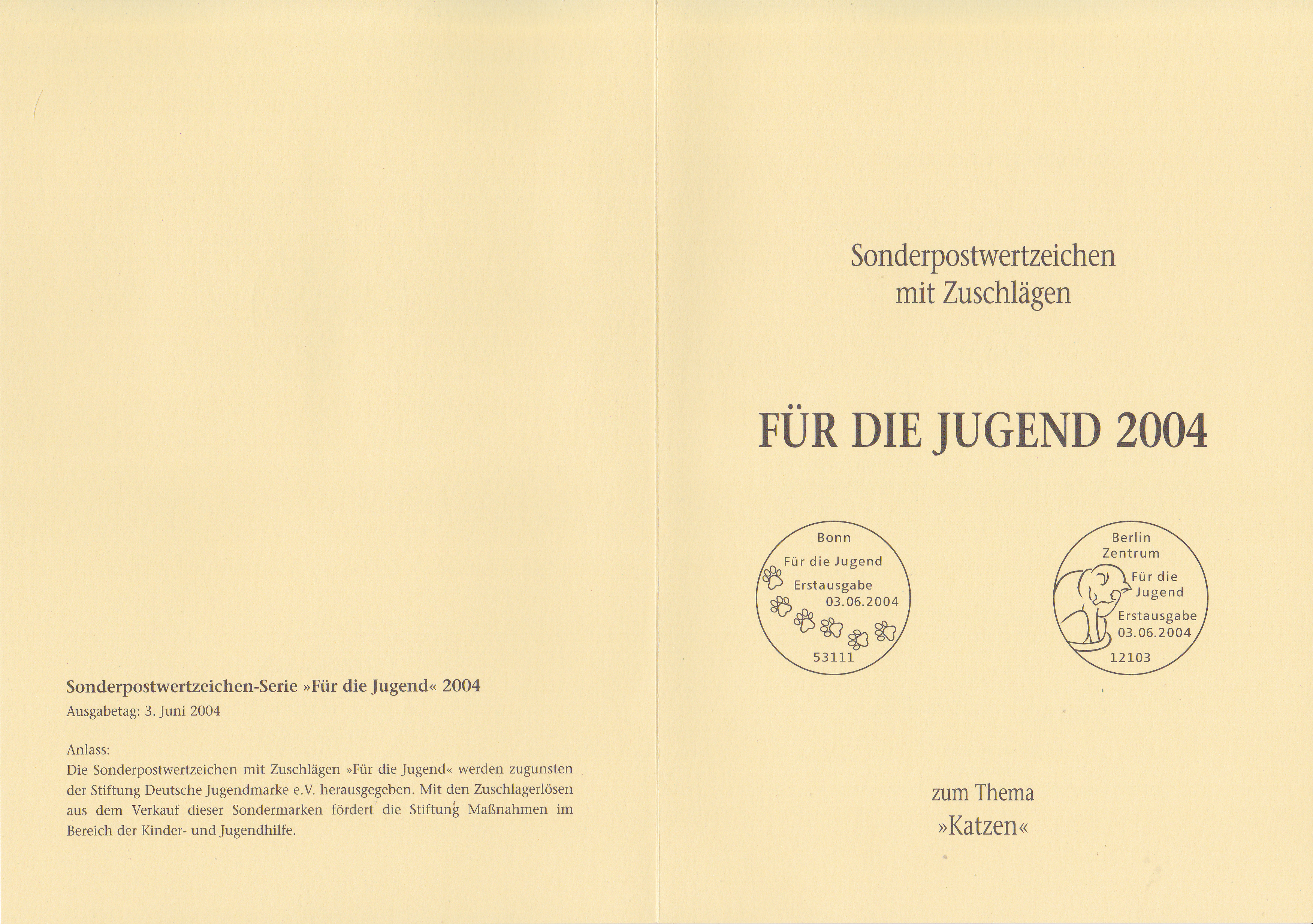 Diese Klappkarte (herausgegeben von der Stiftung Deutsche Jugendmarke e.V.) kann man auch hier unter dem Begriff "Ministerkarten" einordnen, da den Vorsitz bei dieser Stiftung immer der/die jeweilige Minister/in für Familie, Senioren, Frauen und Jugend hat, wie diese Klappkarte mit den Jugendmarken 2004 belegt.