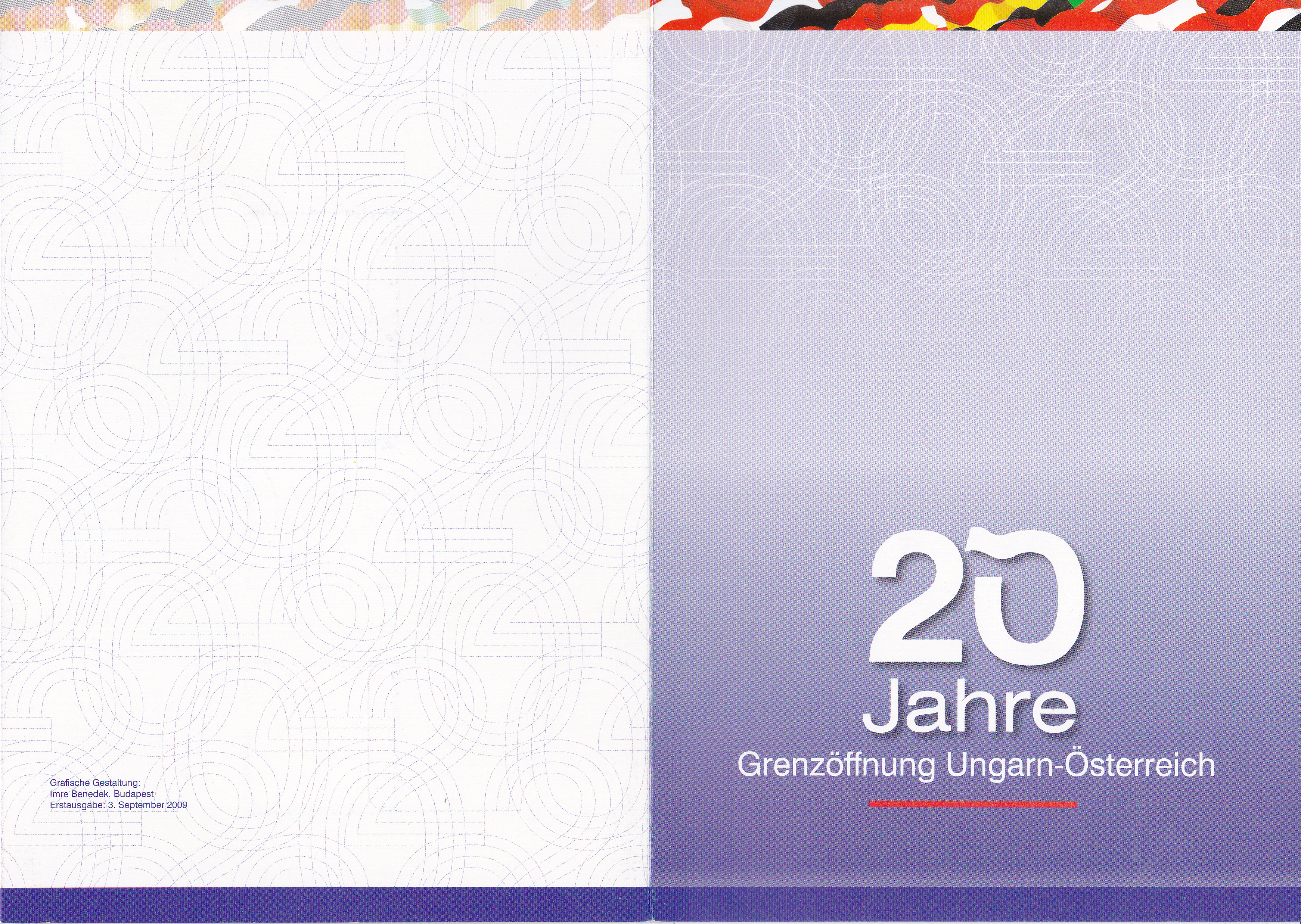 Farbige Ministerkarte mit je einer Marke "20 Jahre Grenzöffnung Ungarn-Österreich (Bund MiNr 2759, Ungarn MiNr 5383 und Österreich MiNr 2823) und den jeweiligen Ersttagsonderstempel Berlin, Budapest und Wien.